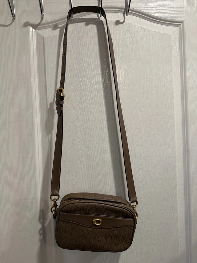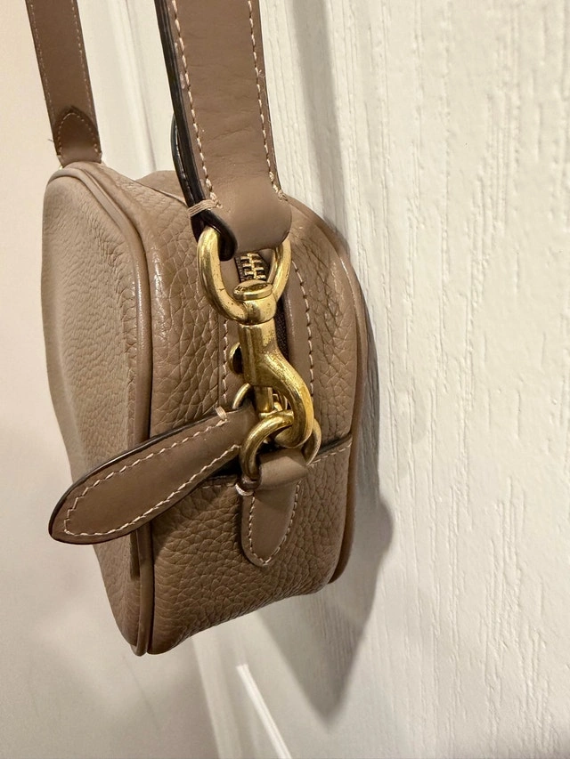 This is a stylish and compact Coach crossbody bag, perfect for everyday use. The bag is in used, but good condition. If you've been searching for a dependable crossbody to carry your things, then this is definitely a bag for you!