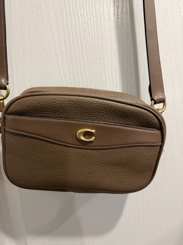 This is a stylish and compact Coach crossbody bag, perfect for everyday use. The bag is in used, but good condition. If you've been searching for a dependable crossbody to carry your things, then this is definitely a bag for you!