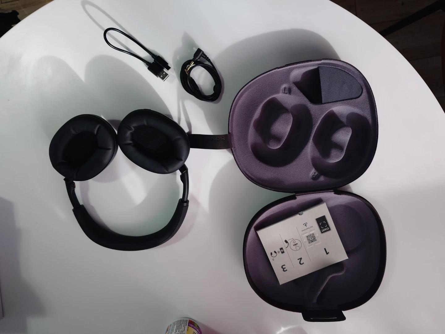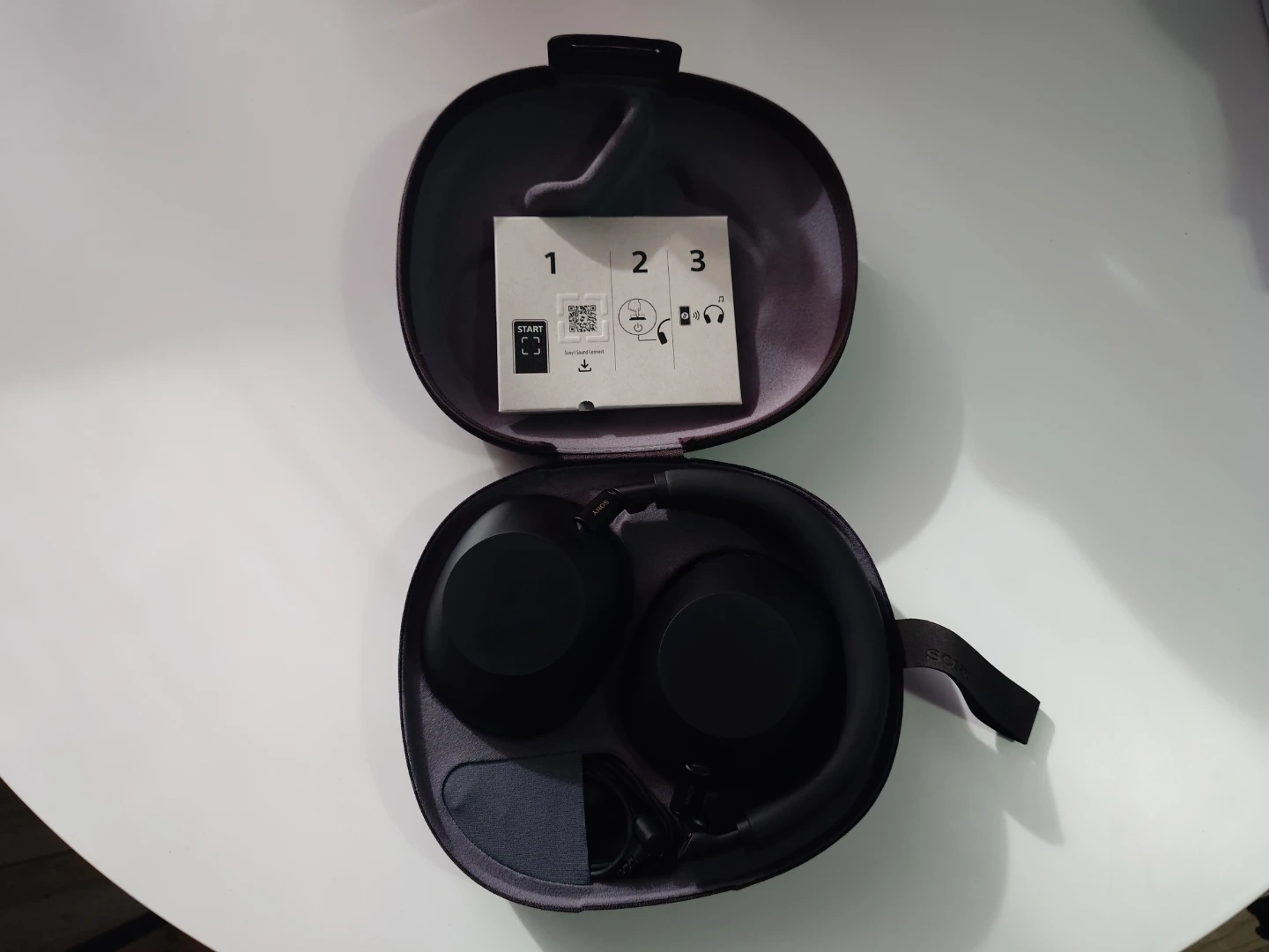Black Sony WH-1000XM6 wireless noise-cancelling headphones. They come with the original charging case and included accessories. These headphones offer excellent sound quality and comfort.