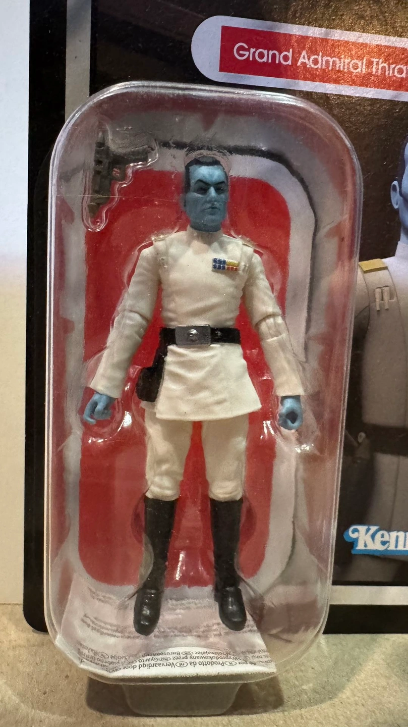 Star Wars The Vintage Collection Grand Admiral Thrawn figure, 2023 release (VC 296). Figure is new. Card has normal shelf wear with a tiny crease at the top. Please check all pictures and ask any questions. Bundle with more collectibles to save. Size: 3.75 in. Character Family: Grand Admiral Thrawn.