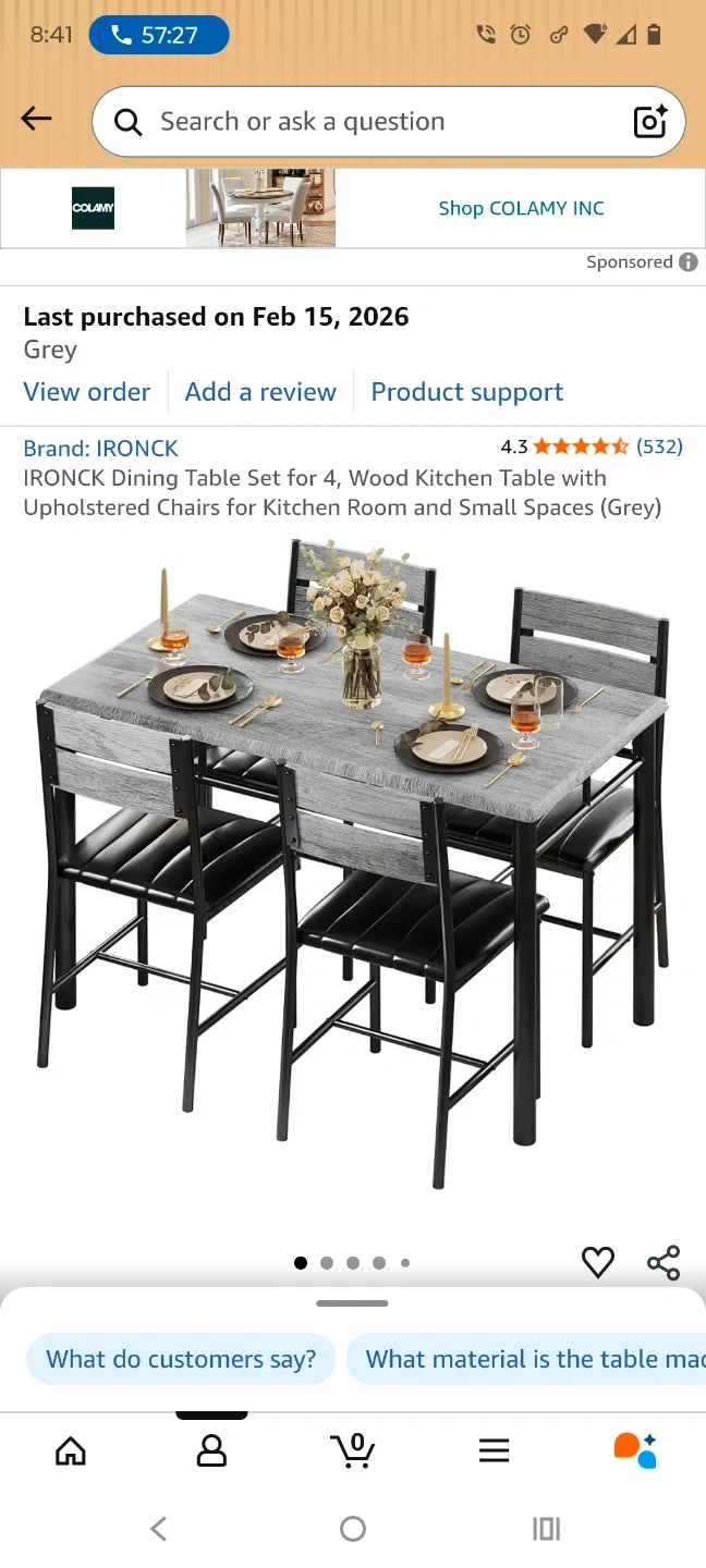 IRONCK Dining Table Set with 4 Upholstered Chairs