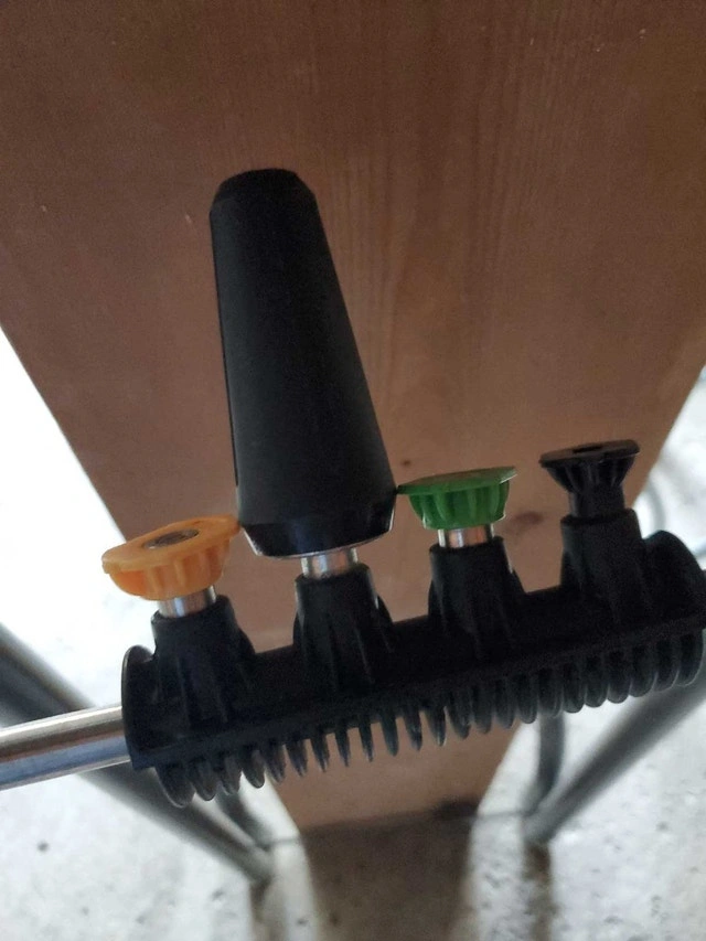 For sale, a used portable corded electric power washer, max 2000 psi, 1.2 GPM. Includes wand with quick release attach with 4 nozzles and an optional use soap container attachment. Operator's manual also included. Available for pickup only. Cash accepted.