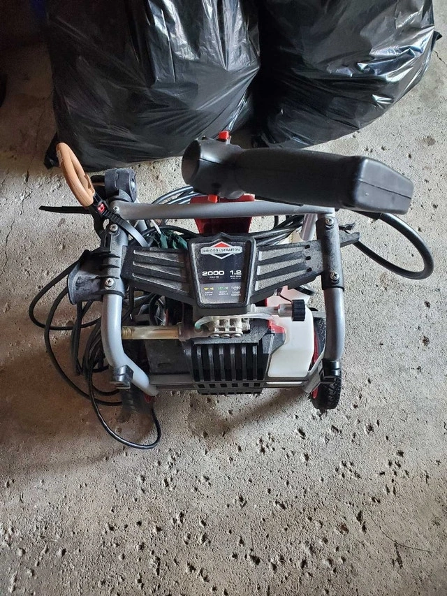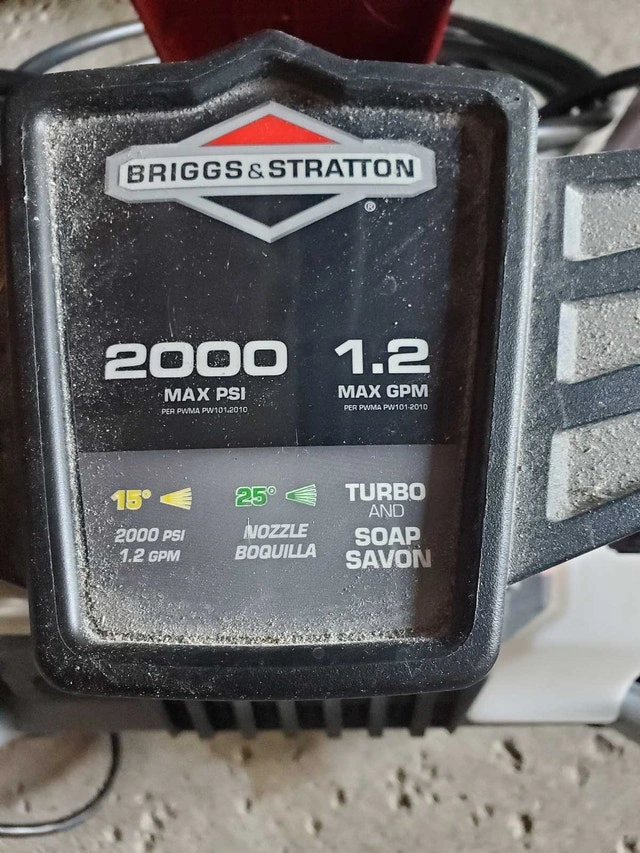 For sale, a used portable corded electric power washer, max 2000 psi, 1.2 GPM. Includes wand with quick release attach with 4 nozzles and an optional use soap container attachment. Operator's manual also included. Available for pickup only. Cash accepted.