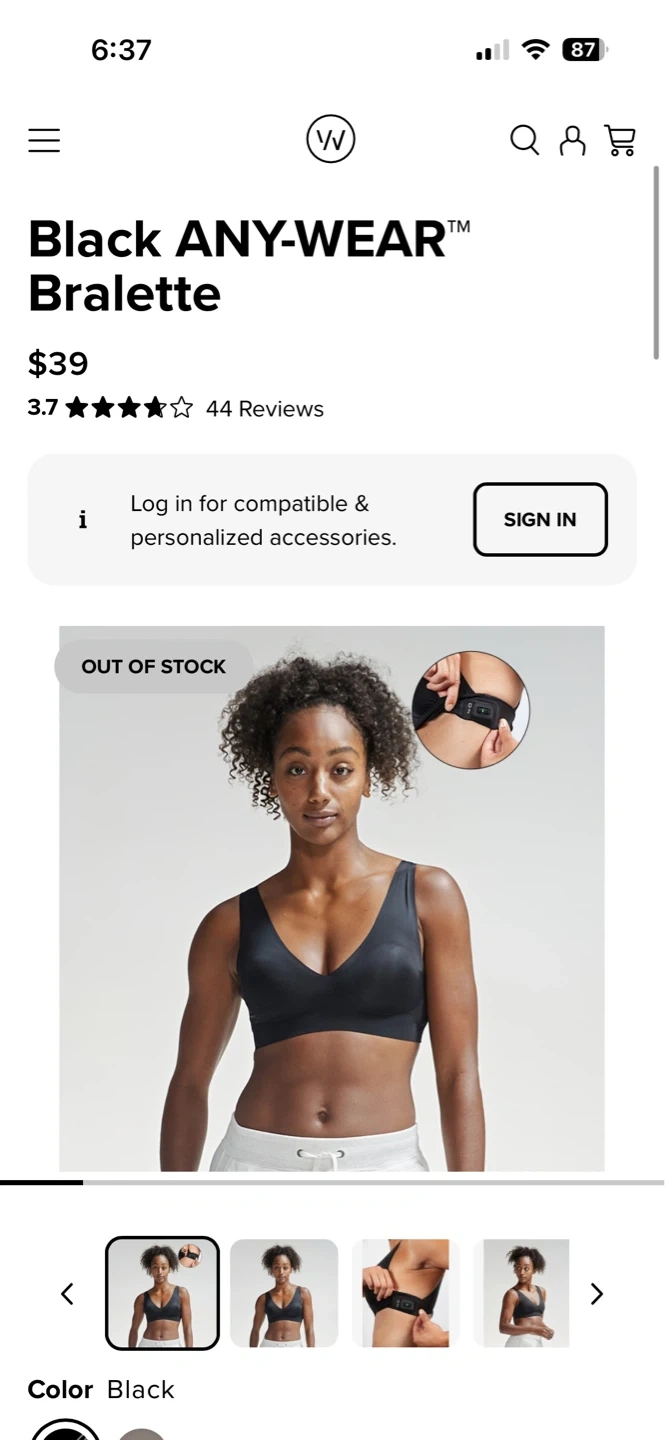 WHOOP BODY Everyday Bralette - Black, Medium