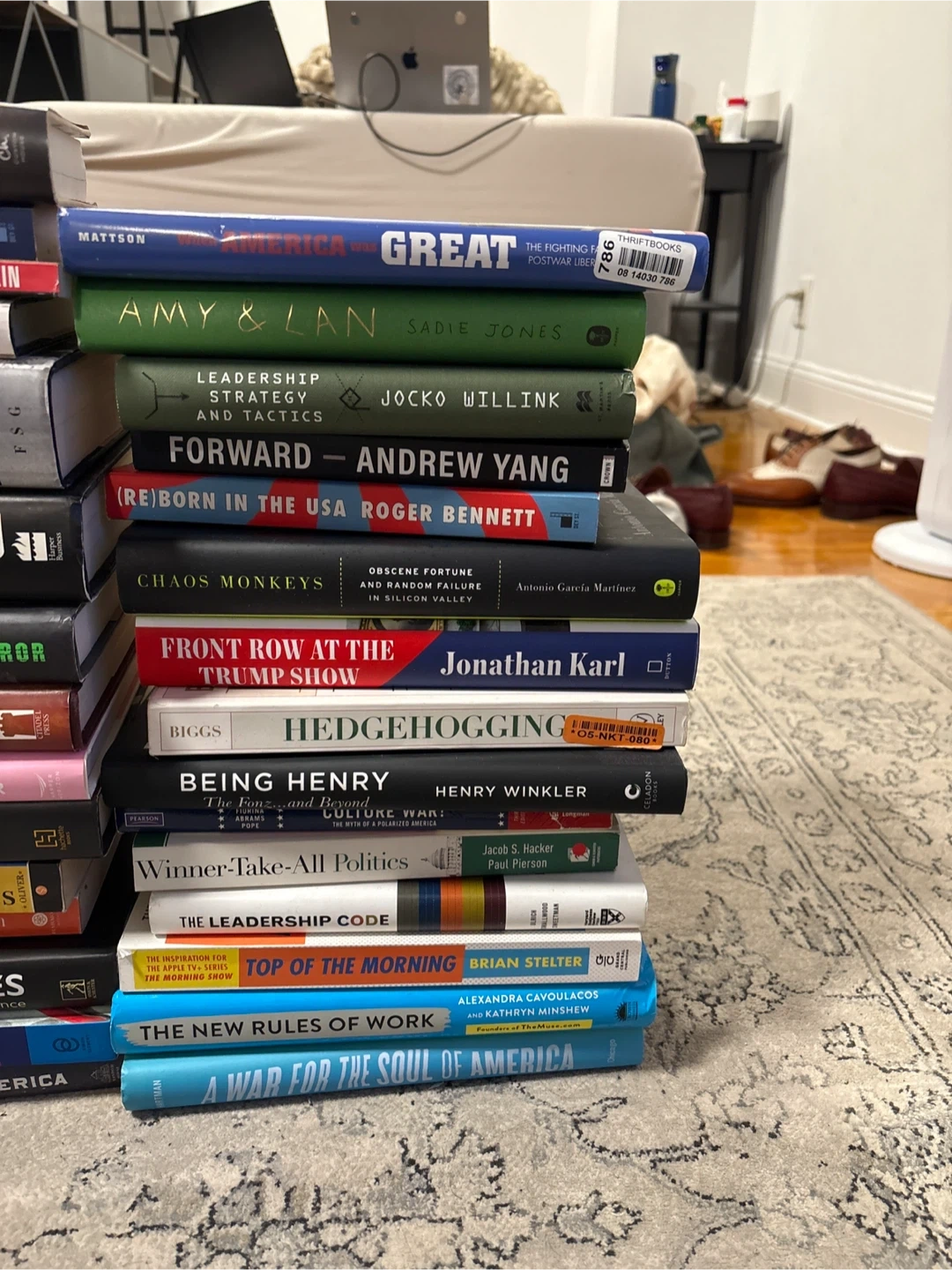 A collection of various books including non-fiction, political, and social commentary titles. Titles include 'America is Not as Great as They Think', 'The Trump Indictments', and 'Race Against Terror'. No specific details on condition or content for individual books are provided.