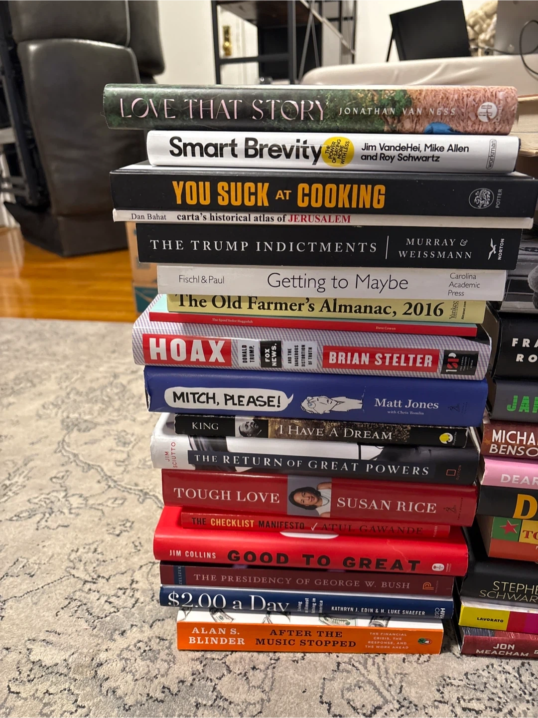A collection of various books including non-fiction, political, and social commentary titles. Titles include 'America is Not as Great as They Think', 'The Trump Indictments', and 'Race Against Terror'. No specific details on condition or content for individual books are provided.