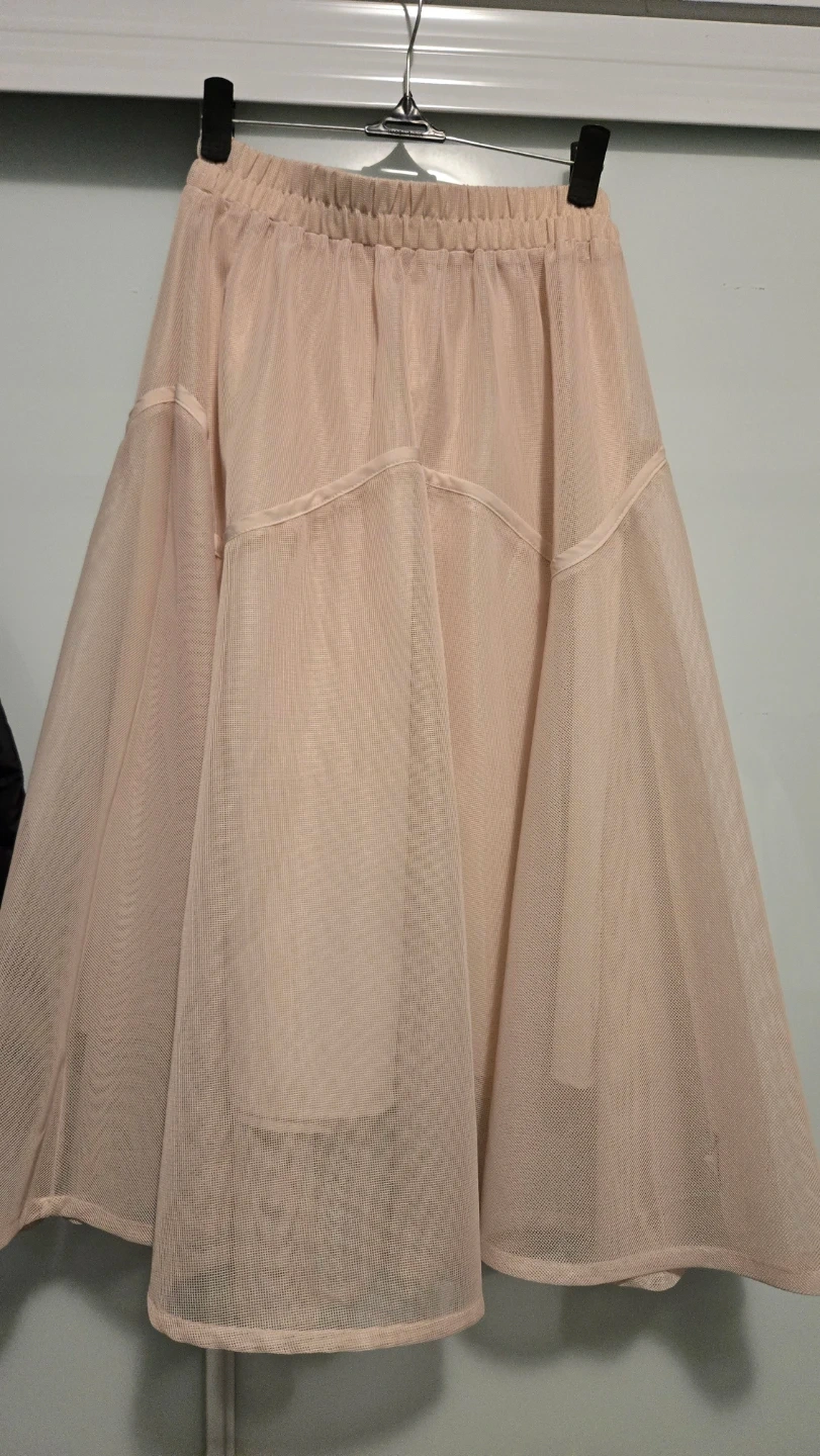 A light pink mesh petticoat skirt is available. It features an elastic waistband for a comfortable fit. This skirt adds volume and a flowy look under dresses or skirts.