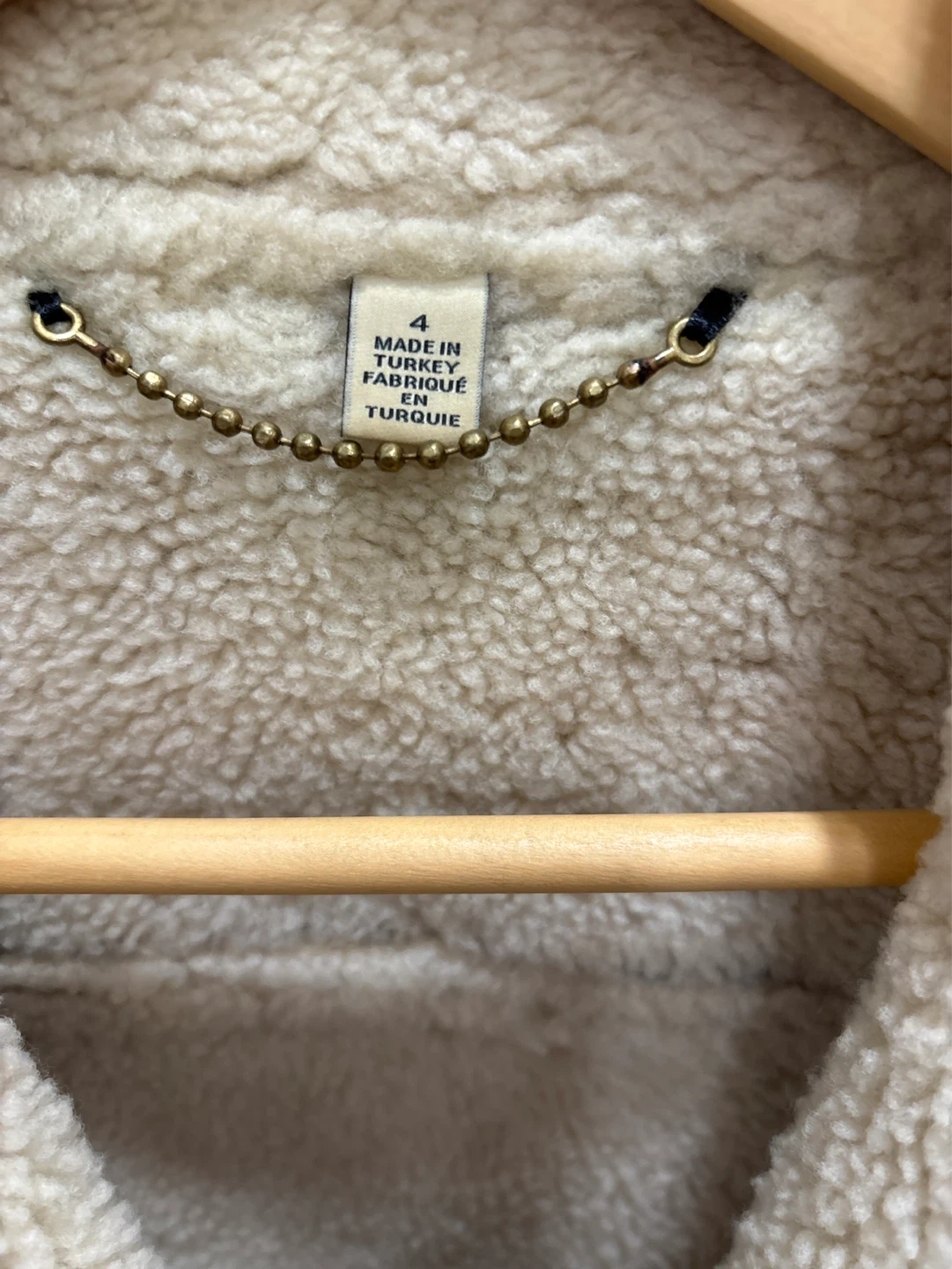 This Coach biker jacket features a shearling lamb body with calf leather trim. It's made in Turkey and designed for dry cleaning by a leather specialist. A stylish and warm choice for cooler weather!