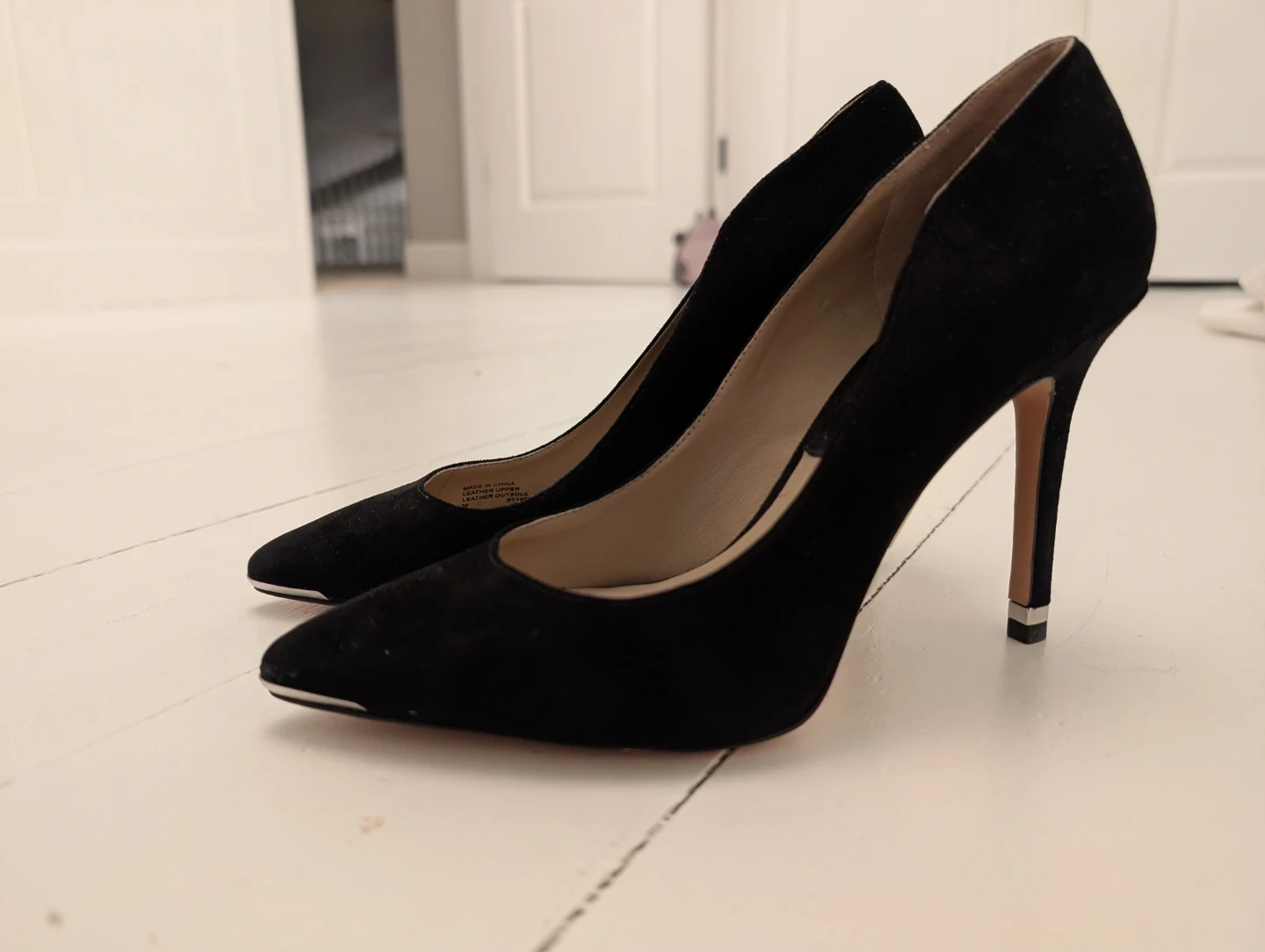 Classic Michael Kors suede pumps in black. Features a pointed toe and a sleek heel. Verano Cuoio sole. Perfect for dressing up any outfit!