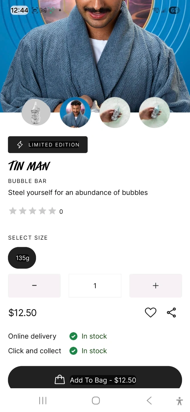 Get ready for a bubbly bath with this Lush Tin Man Bubble Bar! It's a limited edition item, weighing 135g. Just swish it under running warm water to create mountains of minty fresh bubbles. Relax and enjoy!