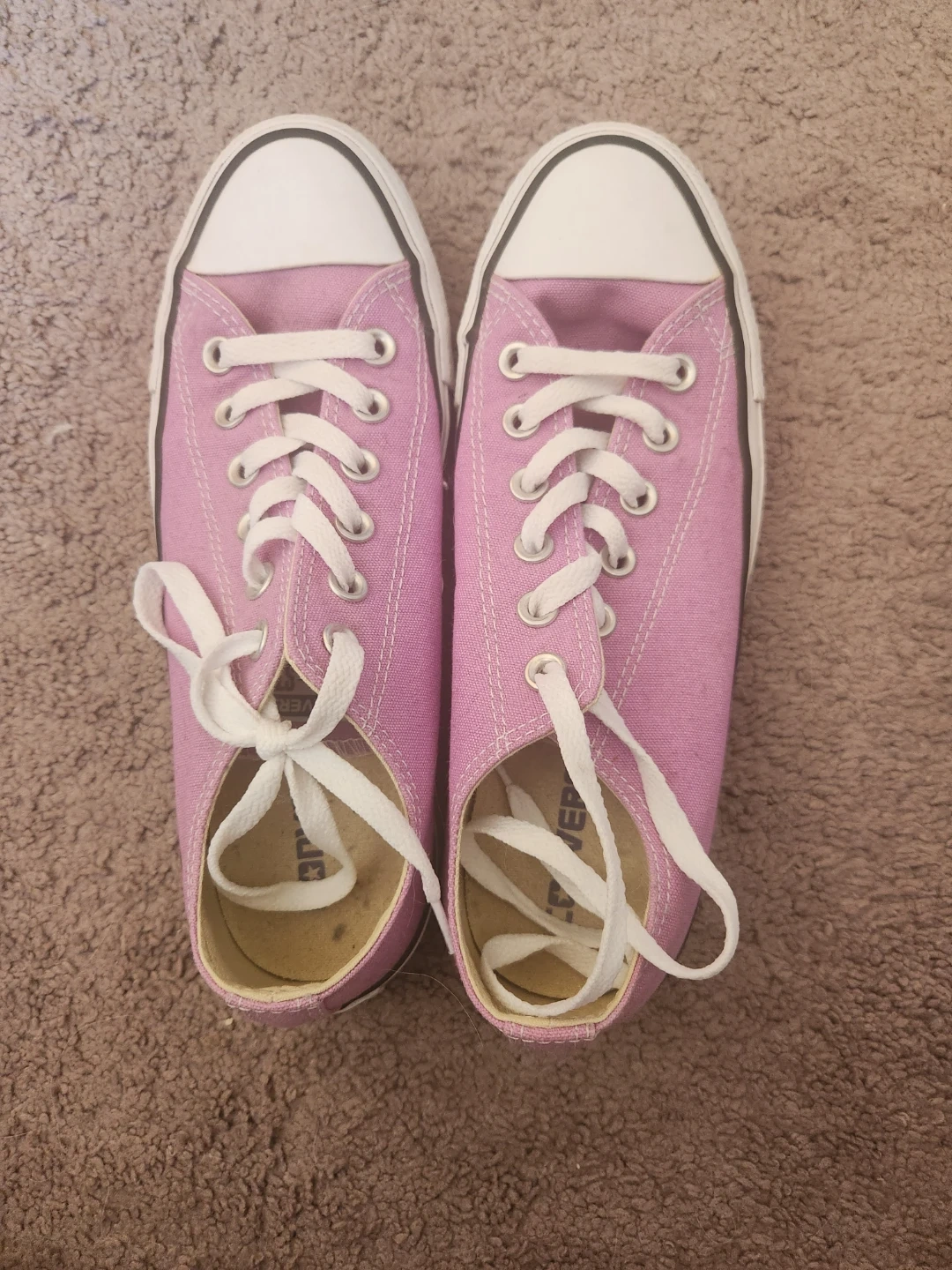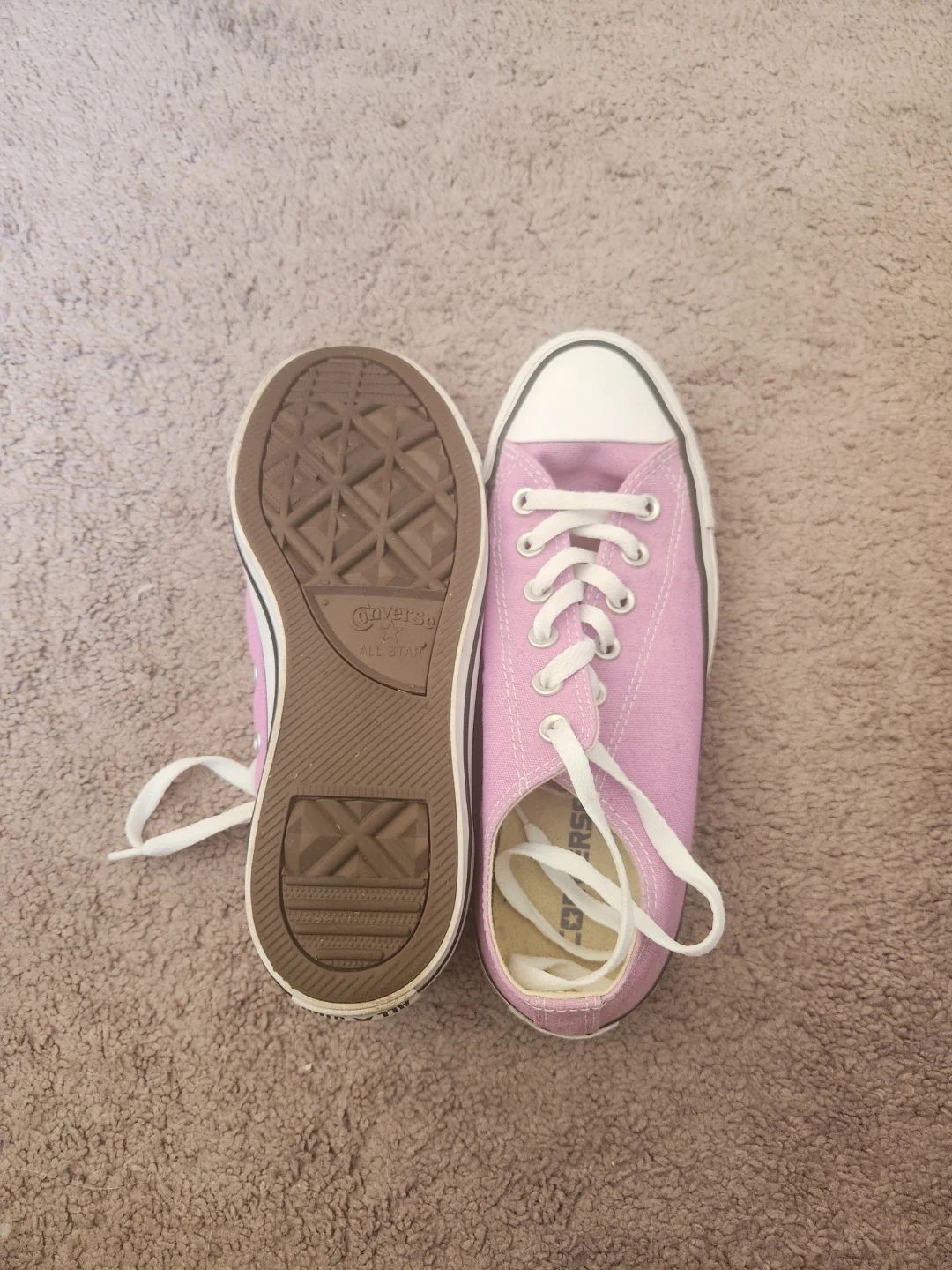 Never worn. Classic pink Converse All Star sneakers. Canvas upper with rubber toe cap. White lace-up closure and white sole. A timeless style for everyday wear!