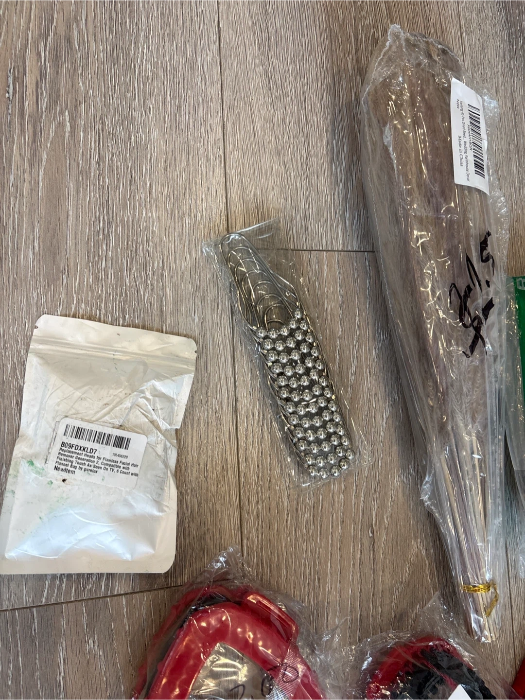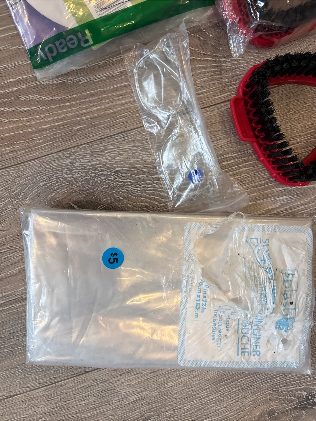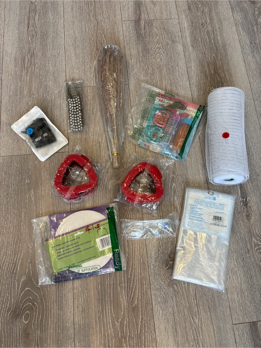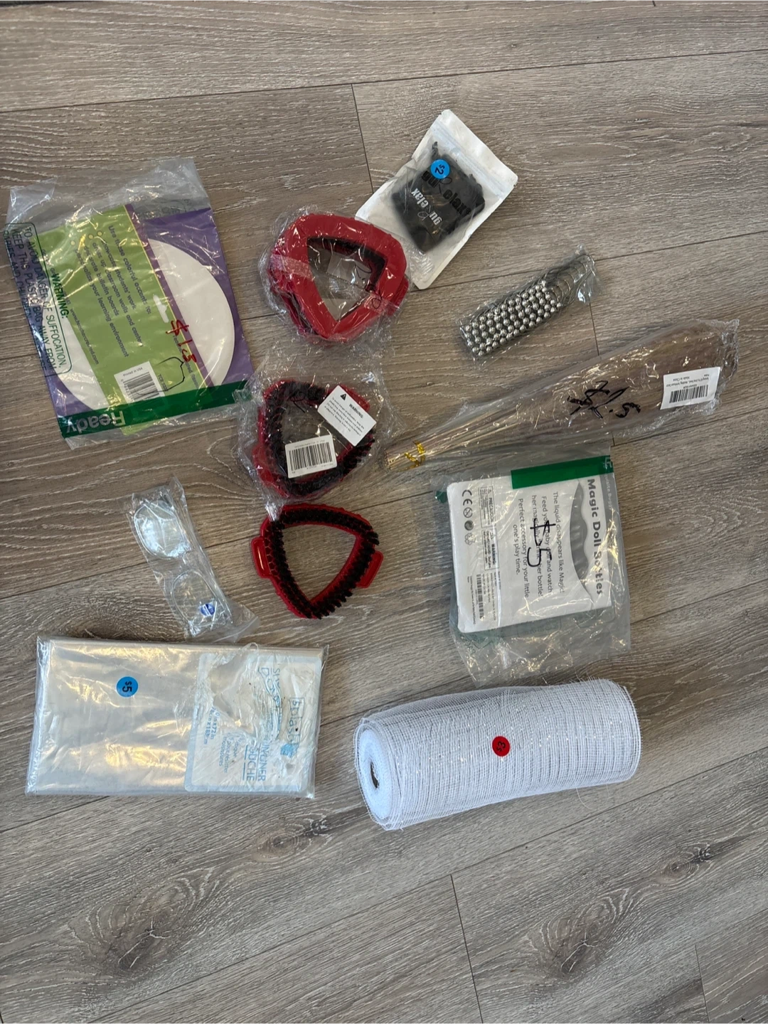A collection of crafting and household items including mesh fabric, cleaning brushes, and decorative elements. The bundle contains various tools for your projects and home organization needs.