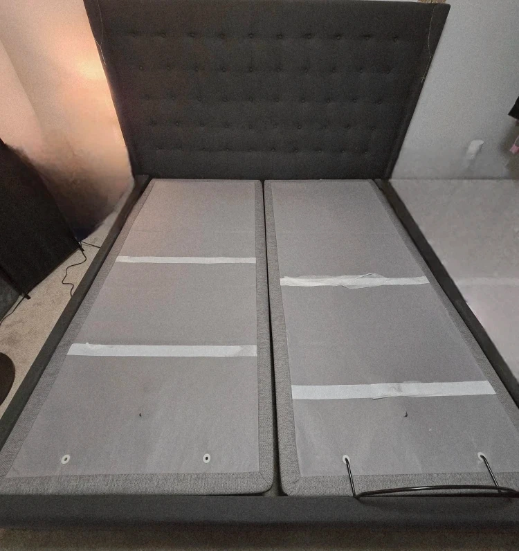 Selling a grey upholstered bed frame and king split adjustable bed....one side is missing remote and power cord thats why its priced low its due to movers losing them. You can can number on back of other remote and order both.