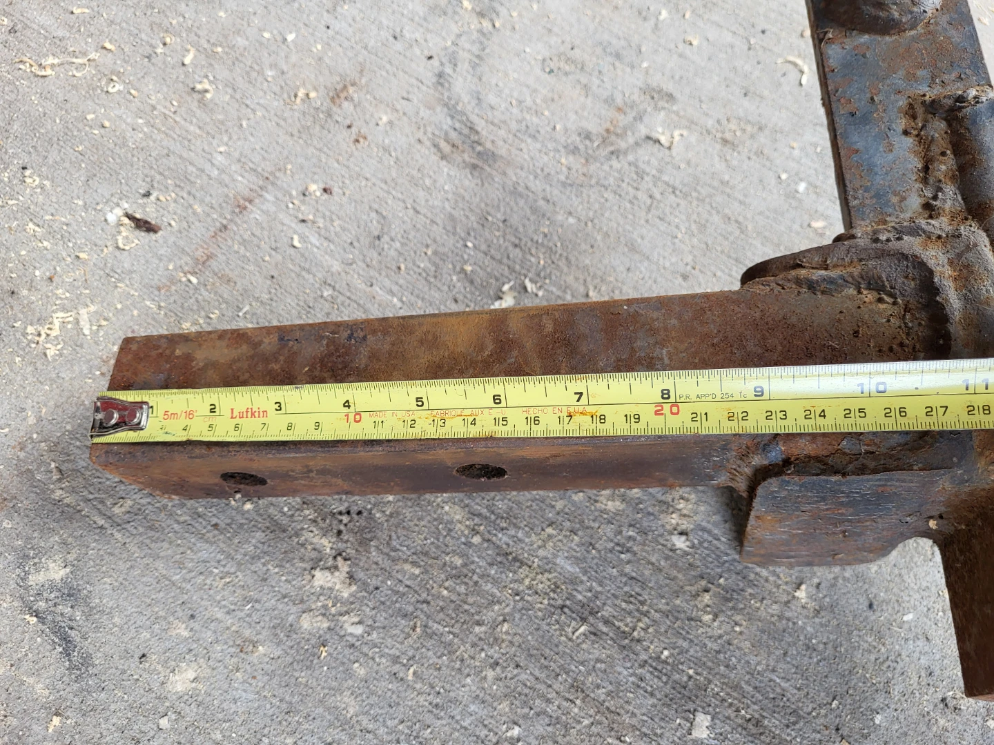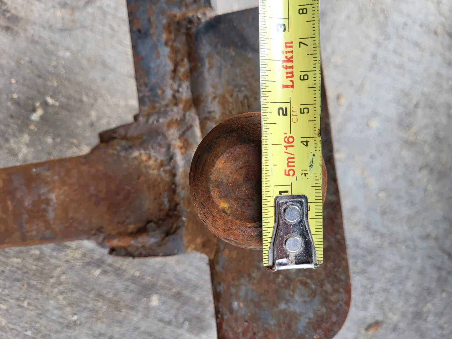This is a rusty hitch ball mount. It has a 2-inch receiver size and a 2-inch ball. (I believe.) The mount extends about 7.5 inches from the receiver opening.
