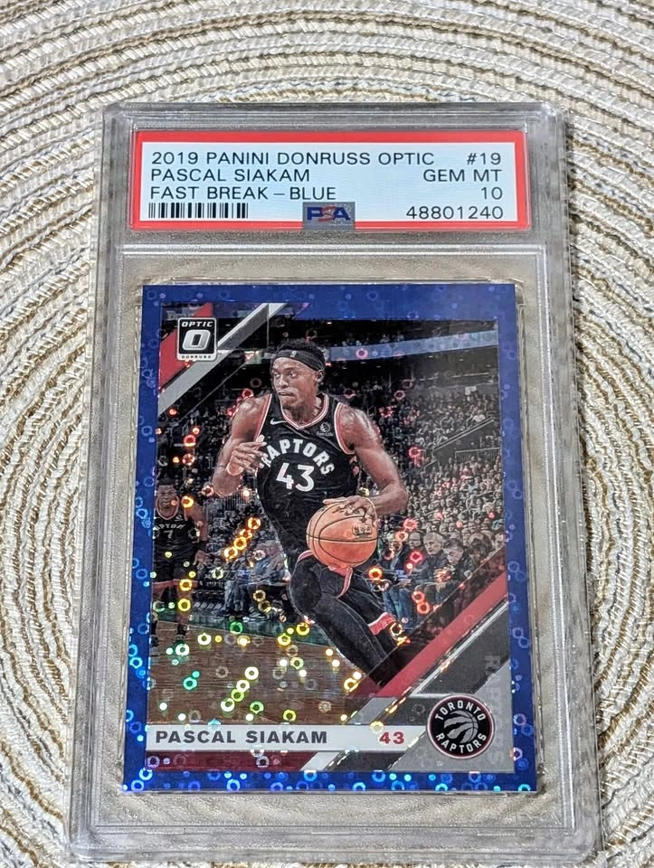 Graded card for sale! This a 2019 Panini Donruss Optic Pascal Siakam Fast Break Blue. It's a PSA 10 Gem Mint, so super clean. It's also numbered 37/50. Great for any Raptors fan or card collector!