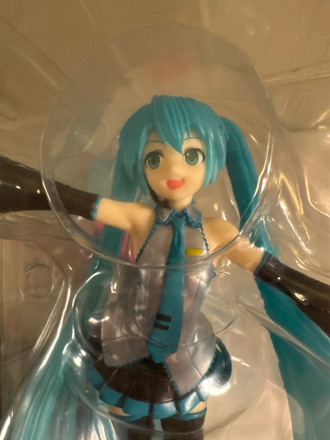 This is the Hatsune Miku Translucent Color Ver. figure from the POP UP PARADE series. It's a collectible figure featuring the popular virtual singer. The figure stands around 17cm tall and is made by Good Smile Company.