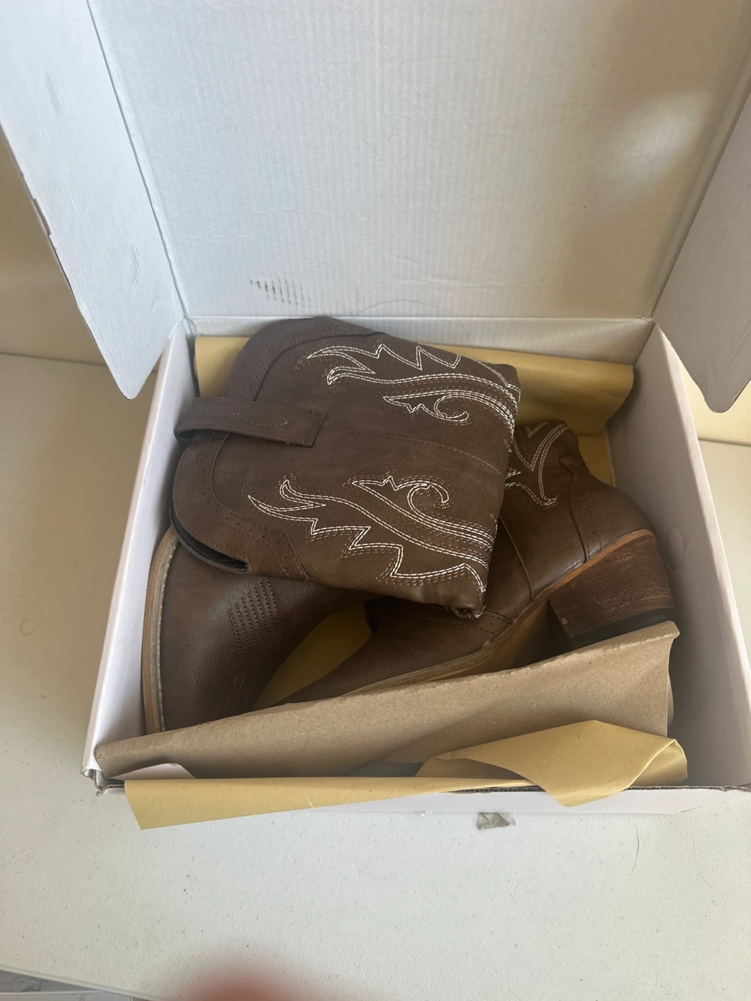 Selling a pair of Rollda Collection cowboy boots in brown. They come with the original box. These boots are perfect for adding a touch of western style to your wardrobe!