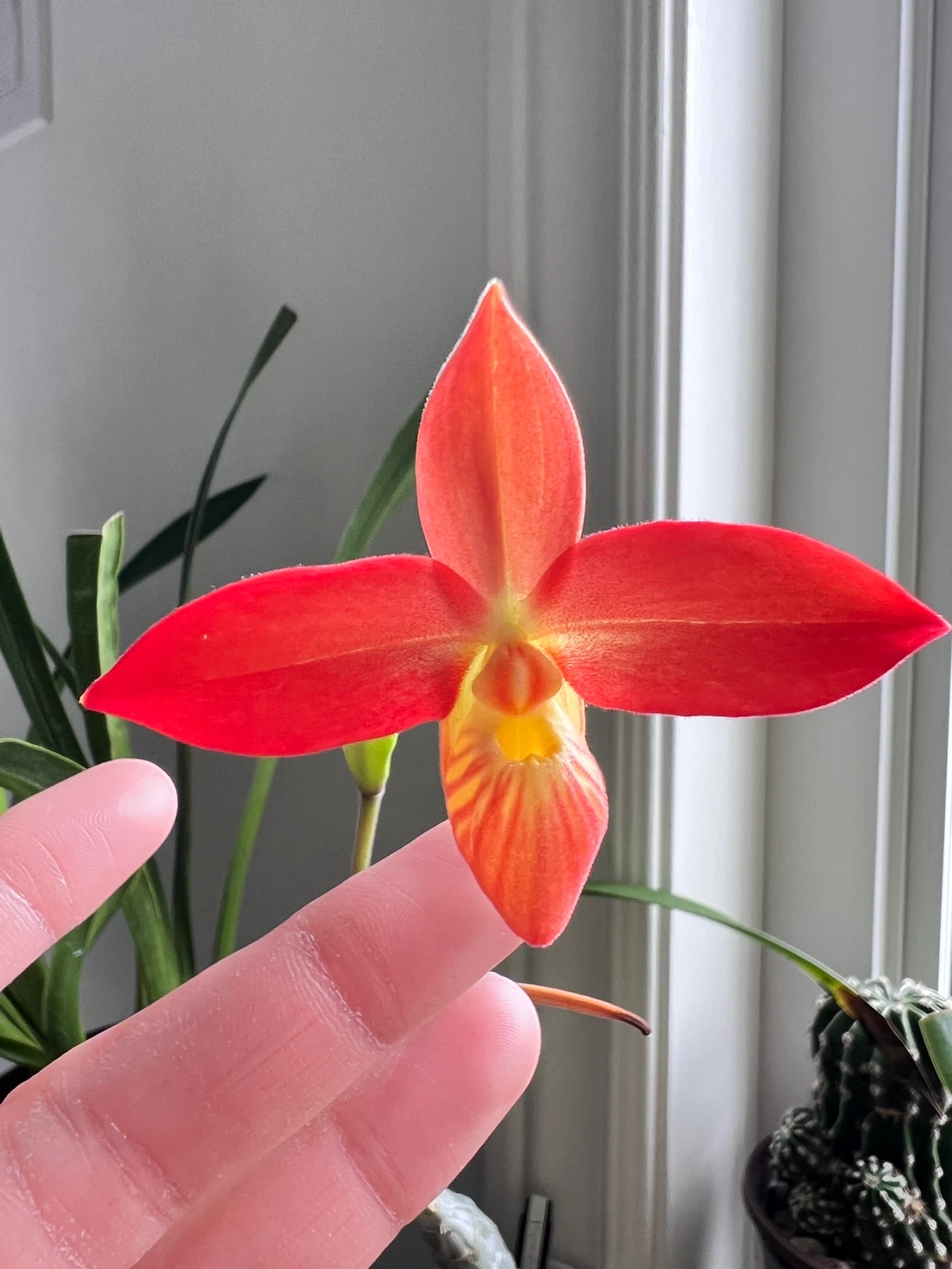 This species is famous for its vibrant red to orange flowers. besseae is a sequential bloomer and can bloom up to 8+ blooms or more in one spike continuously.
