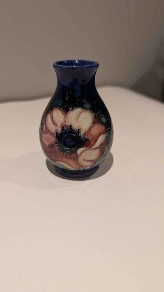 This is a small 4" Moorcroft vase. It has a small chip on the back that isn't visible when displayed from the front. Please see the pictures. The price reflects its current condition. It's a great piece to start a collection.