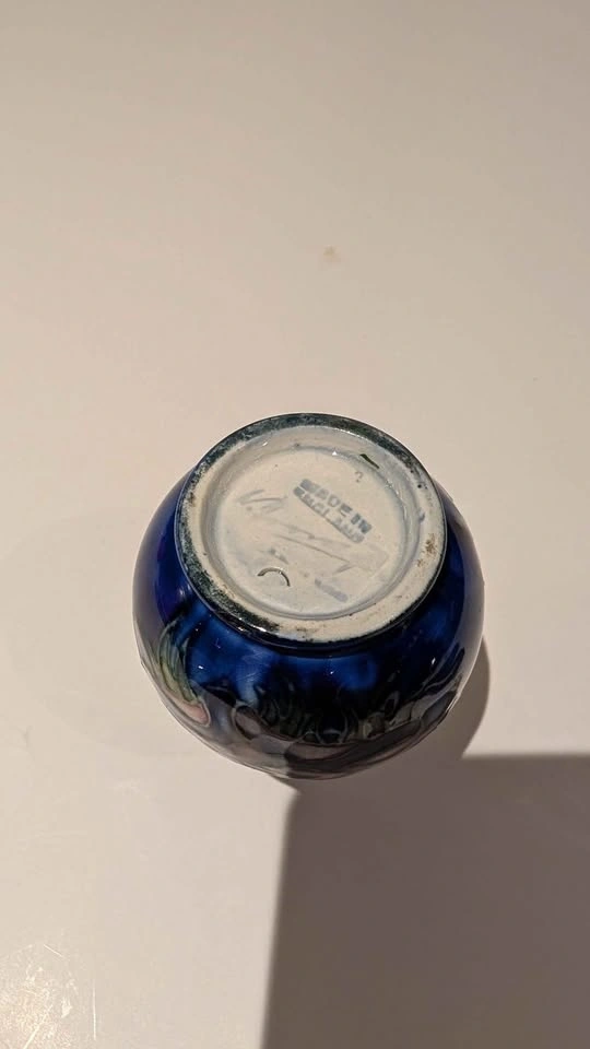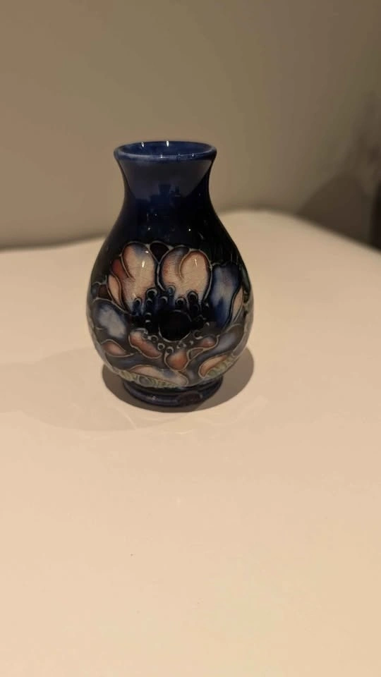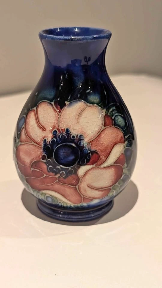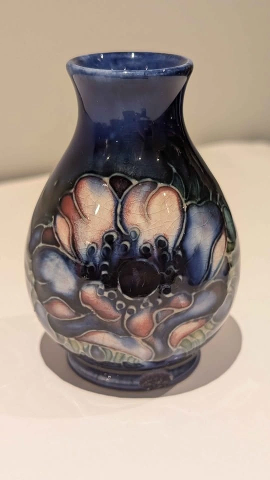 This is a small 4" Moorcroft vase. It has a small chip on the back that isn't visible when displayed from the front. Please see the pictures. The price reflects its current condition. It's a great piece to start a collection.