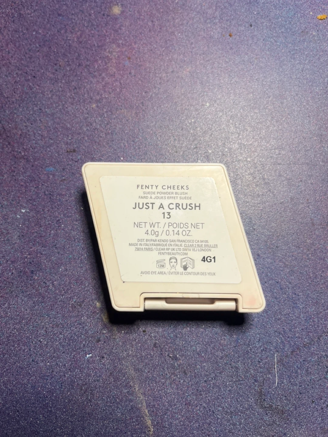This is Fenty Beauty "Just a Crush" 13 Suede Powder Blush. It contains 4.0g / 0.14 oz of product. This blush is great for adding a pop of colour to your cheeks!