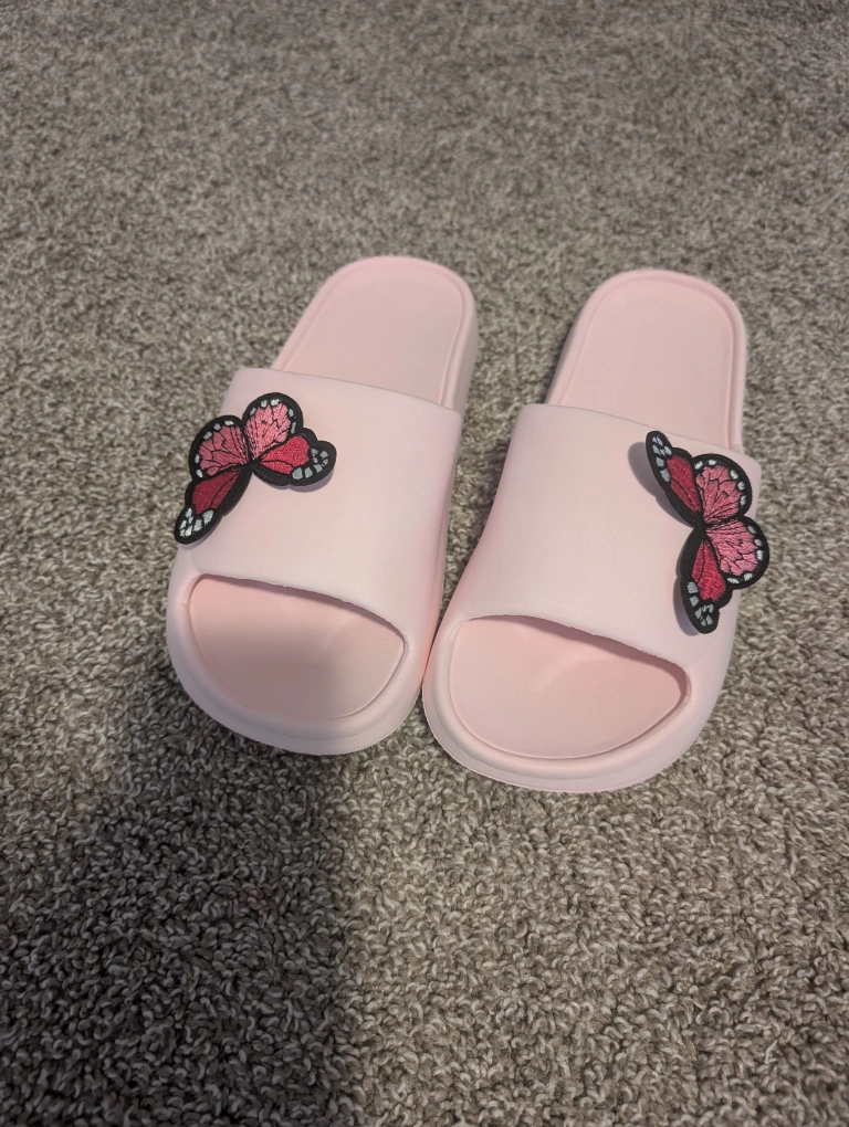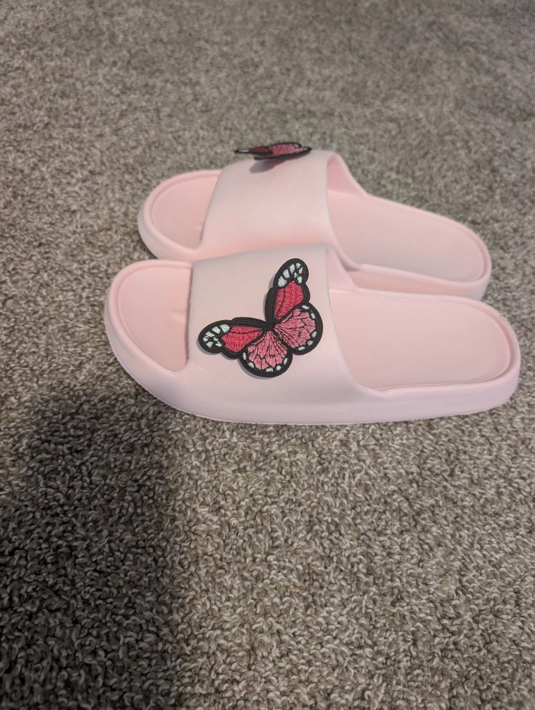 Buy & SellPink Butterfly SlidesPink Butterfly Slides$15Cute pink slides with butterfly embellishments! They're comfy and perfect for warmer weather. ConditionNewSize 7.5-8/40-41WHERE TO MEETCheck LocationView MapSELLERverifiedEllaHuron South600 reviews0 chats·0 favorites·7 viewsSEND CHAT TO SELLERHi Ella! I’m interested in your listing.Hi Ella! I’m interested in your listing.Get the Karrot app to chatSign In to chat