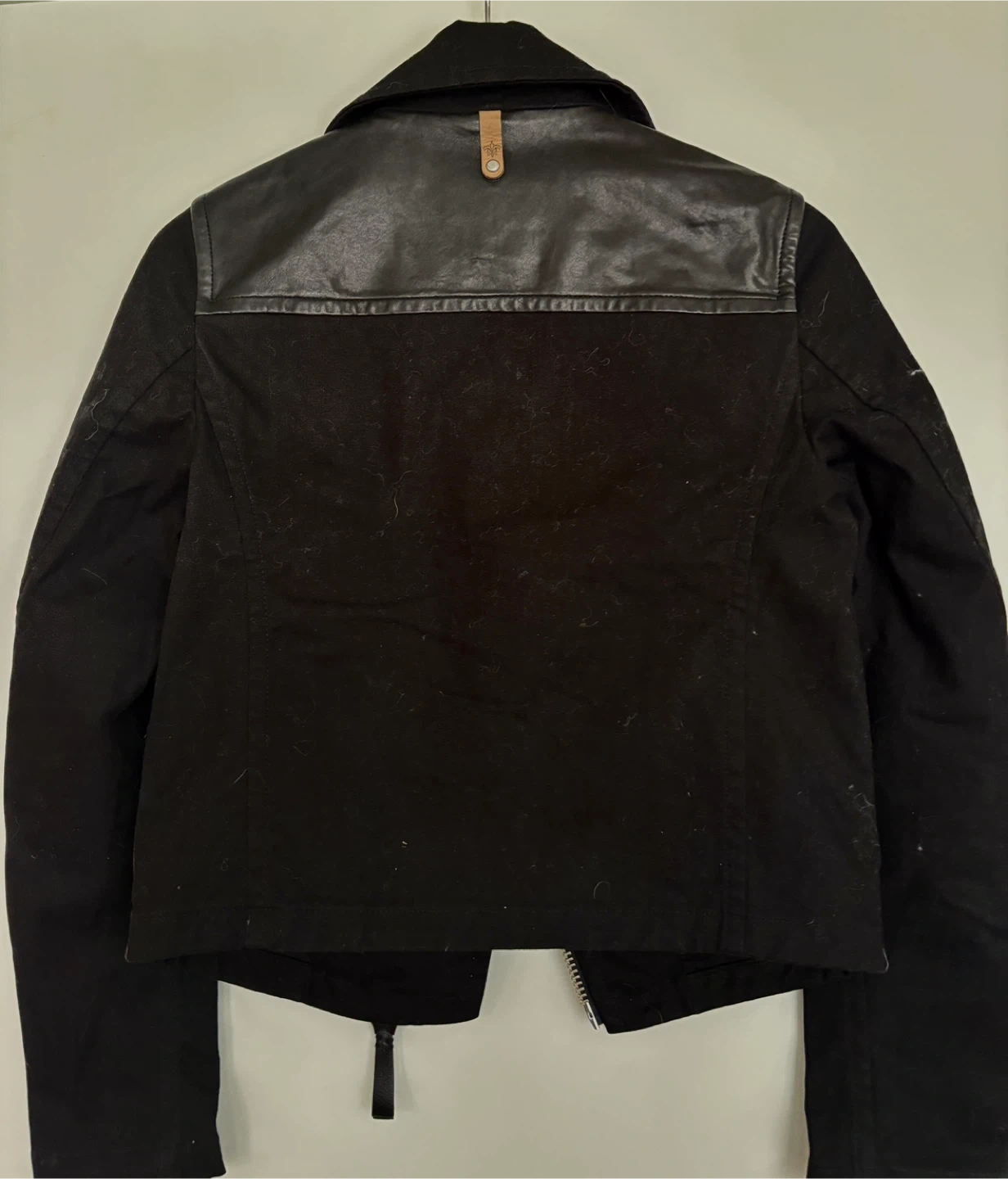 Mackage black leather jacket in size XS. This stylish jacket is perfect for adding an edgy touch to any outfit. It's in great condition and ready for a new home!