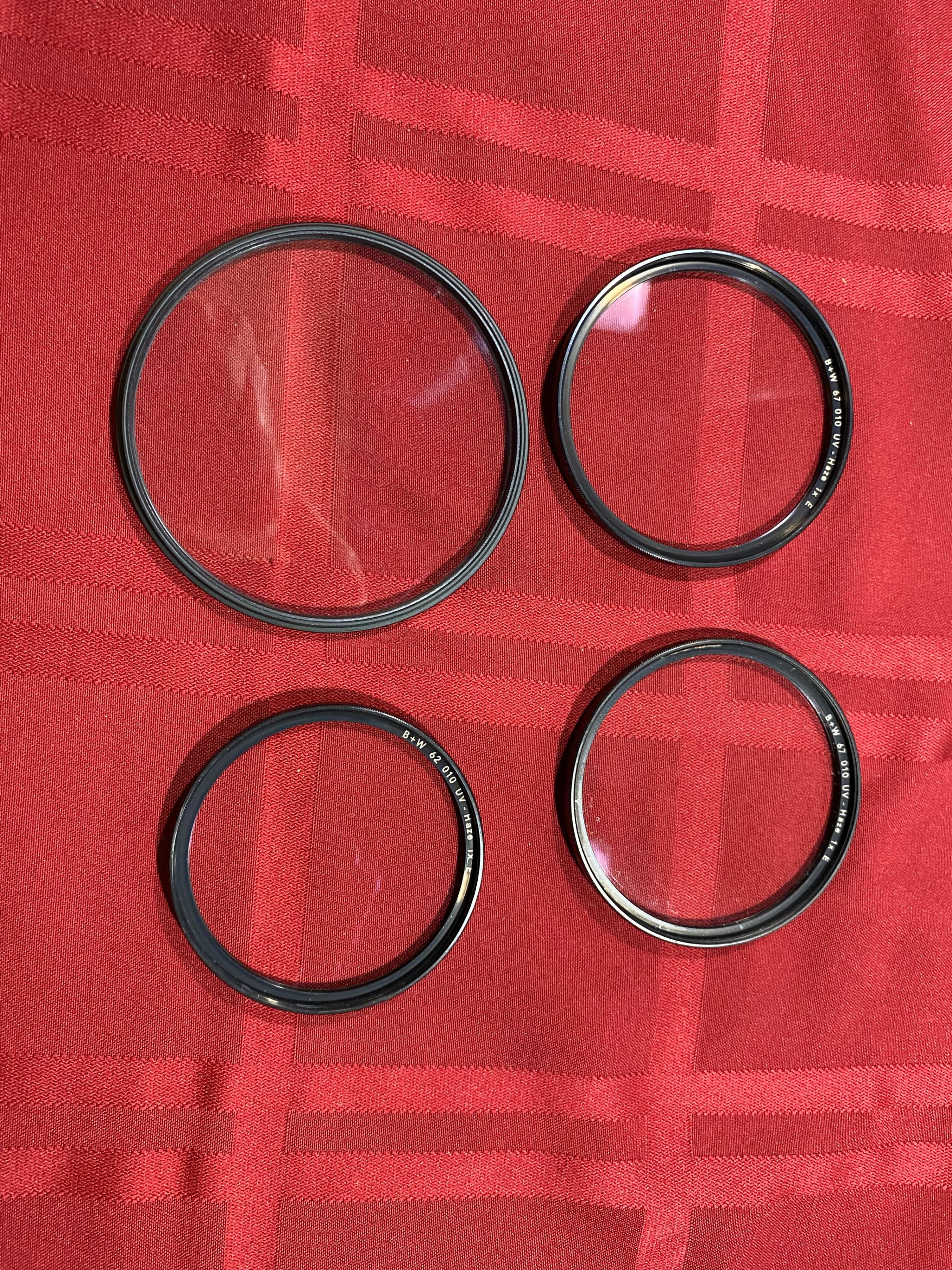 Filters - DiMpower 82mm HD UV $40, B+W 62mm 010 UV Haze 1X E F-Pro $35, B+W 67mm 010 UV-Haze 1X E F-Pro (2) $60