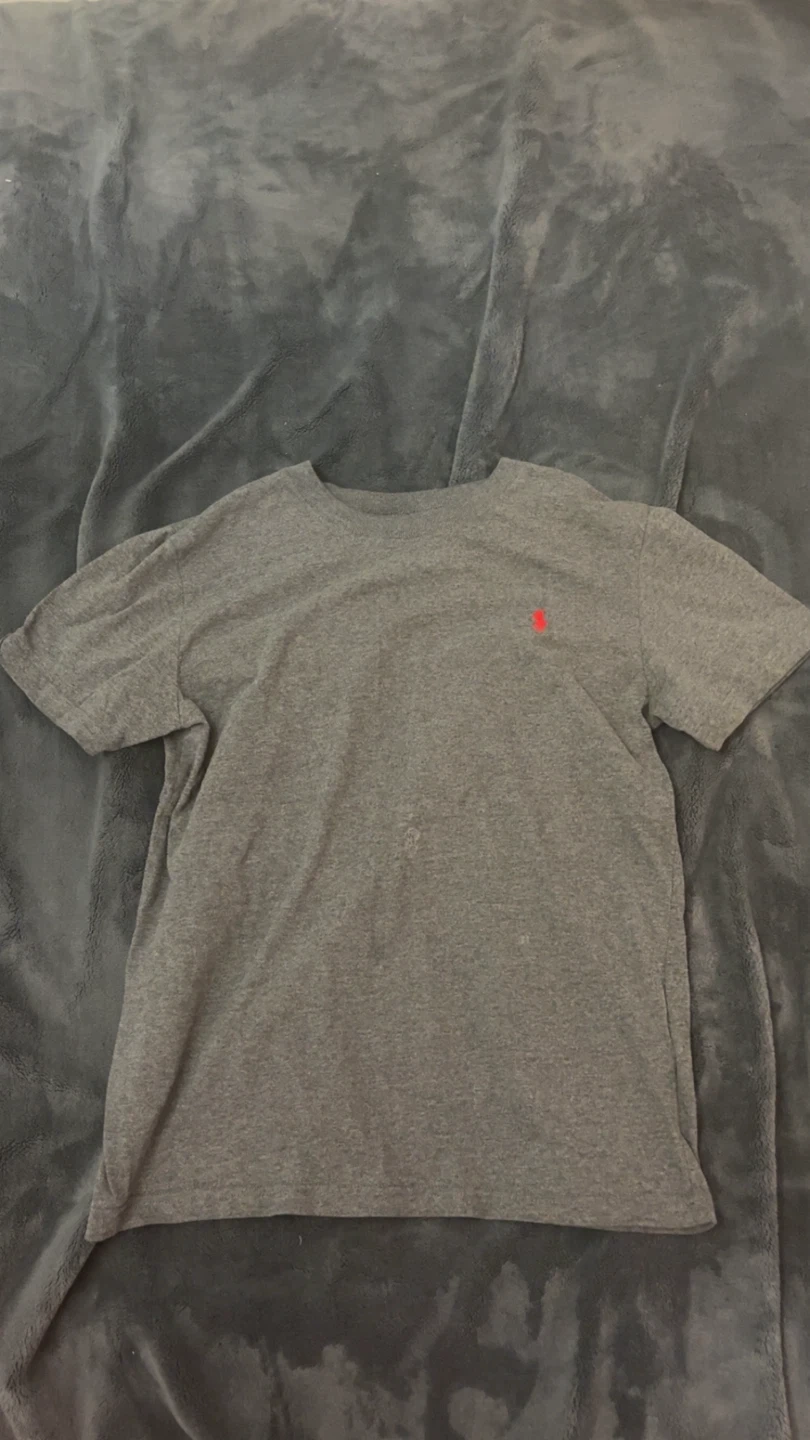 Polo Ralph Lauren t-shirt in heather grey. It's made of cotton. This is a classic crew neck tee with the signature pony logo. Used for 15 dollars