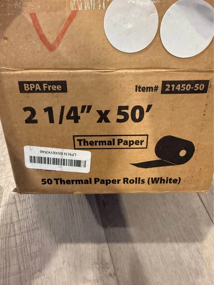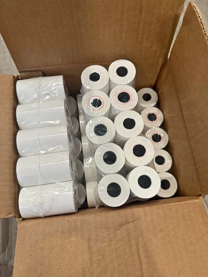Selling a full box of brand new thermal receipt paper rolls.
