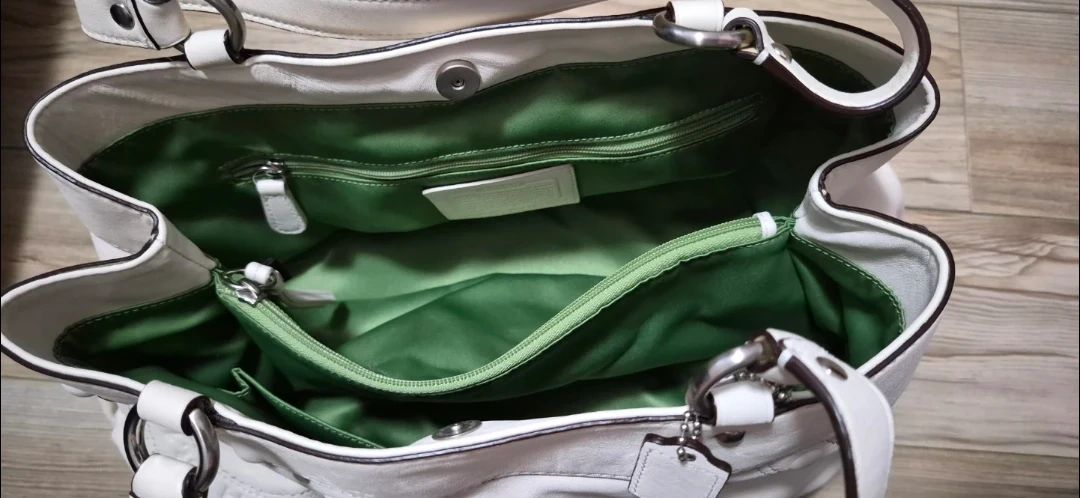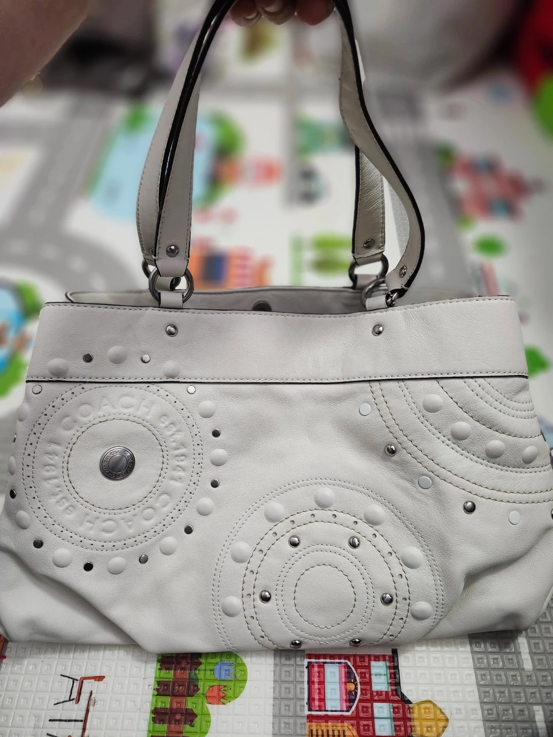 Buy & SellCoach White Leather Tote BagCoach White Leather Tote Bag$30Selling a Coach white leather tote bag. It's in mint condition and has a unique design with silver hardware. ConditionLike newWHERE TO MEETCheck LocationView MapSELLERMaryFleetwood150 reviews1 chats·3 favorites·38 viewsSEND CHAT TO SELLERHi Mary! I’m interested in your listing.Hi Mary! I’m interested in your listing.Get the Karrot app to chatSign In to chat