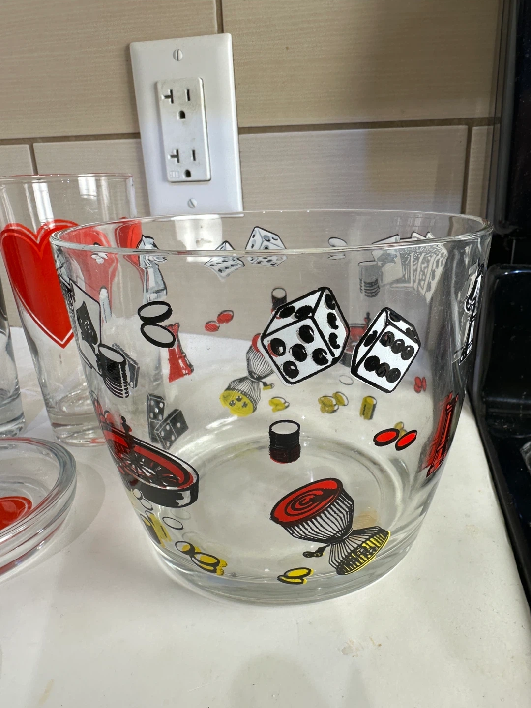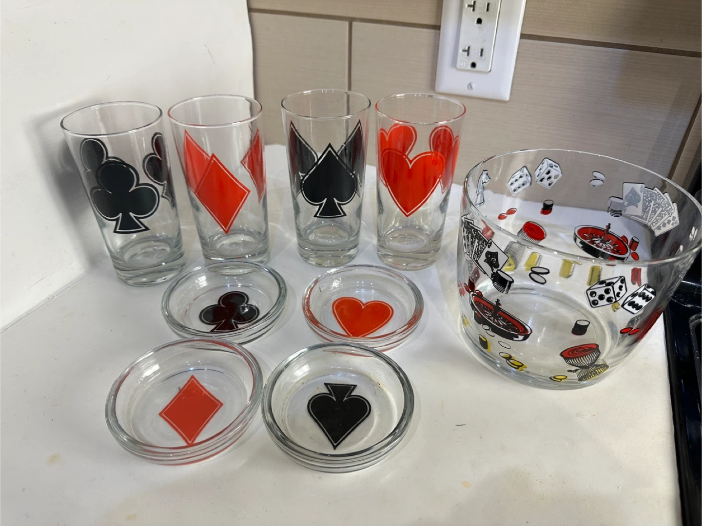 Casino themed glass set with poker suits and dice