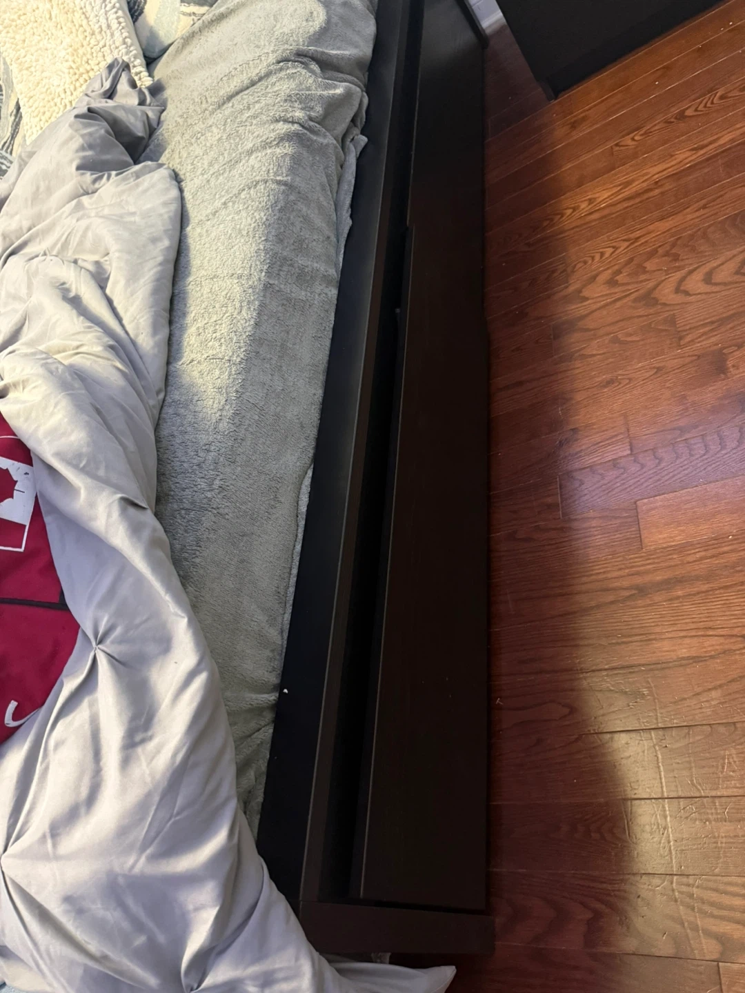 Two IKEA MALM underbed storage boxes in dark brown veneer. These are designed for a high bed, fitting Queen/King sizes. They're great for keeping your bedroom tidy!