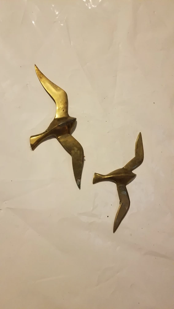 Set of two brass bird figurines. These decorative pieces have a vintage feel. They're great for adding a touch of charm to shelves or accent tables!