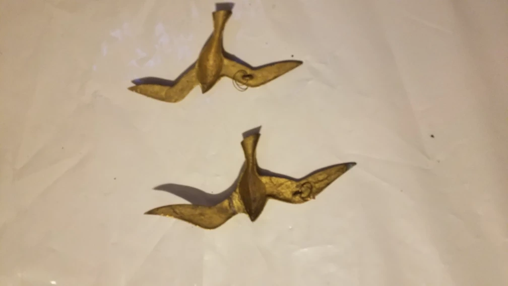 Set of two brass bird figurines. These decorative pieces have a vintage feel. They're great for adding a touch of charm to shelves or accent tables!
