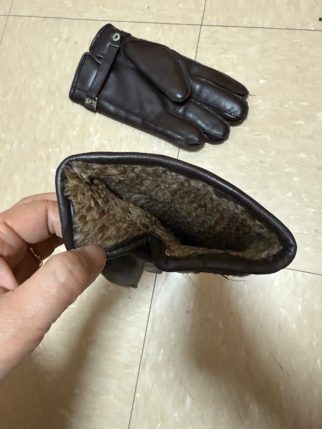 Selling a pair of brown leather gloves, size XL. The gloves have a soft, warm lining, perfect for colder weather!