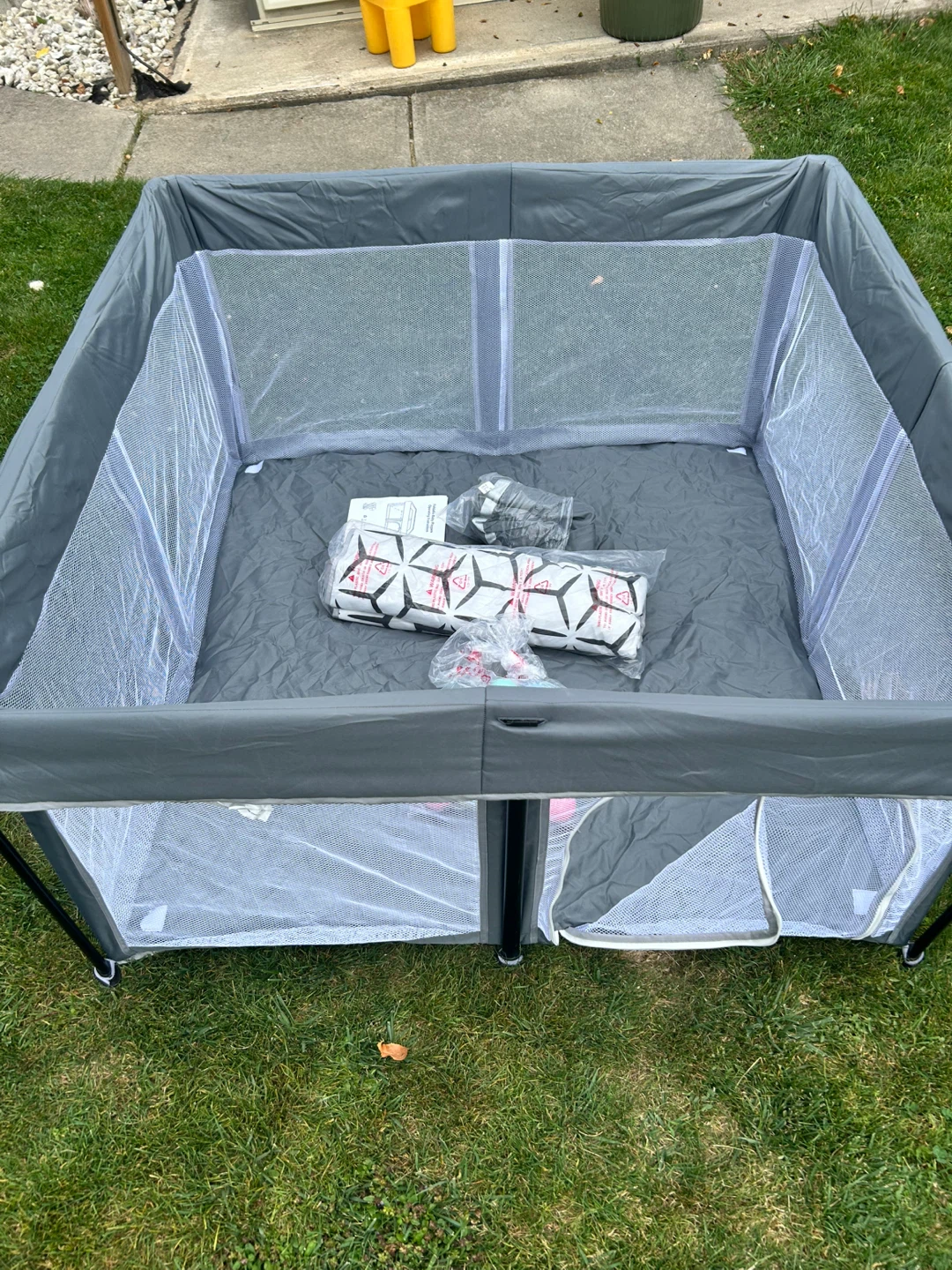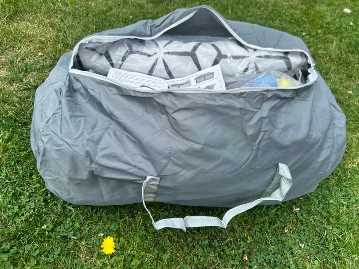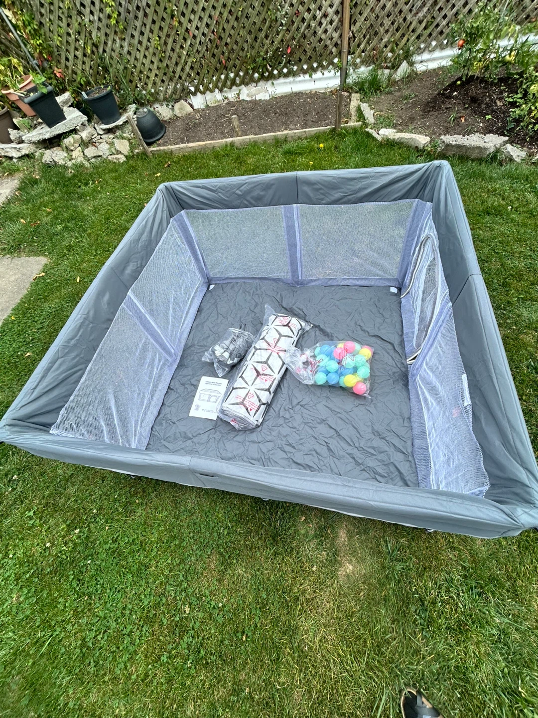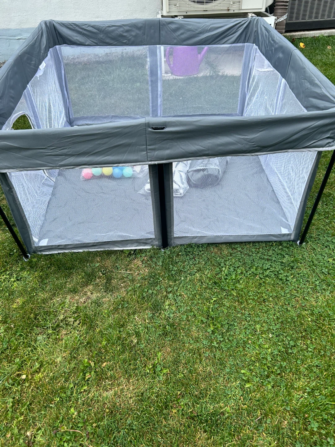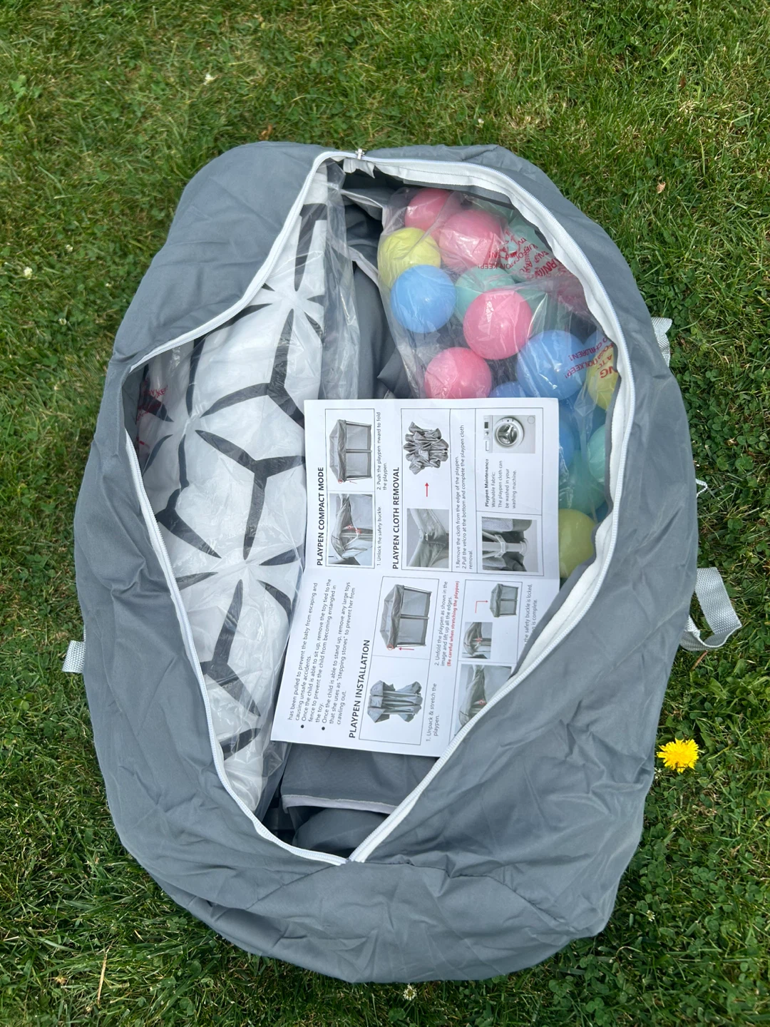 Selling a grey playpen that's perfect for indoor or outdoor use! It's in great condition and comes with the original carrying bag, making it easy to transport and store. Also included are the playpen balls for extra fun! The playpen features a compact design, making it ideal for smaller spaces. It's easy to set up and take down, so you can use it wherever you go