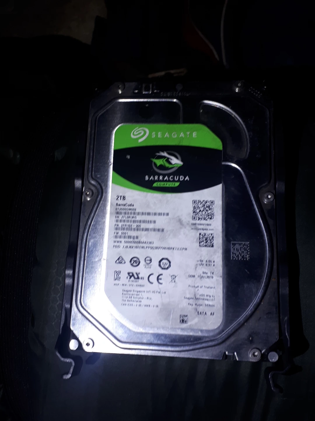 This is a Seagate Barracuda 2TB internal hard drive. It's a SATA AF connection type. Made in Thailand, it was manufactured in July 2015.