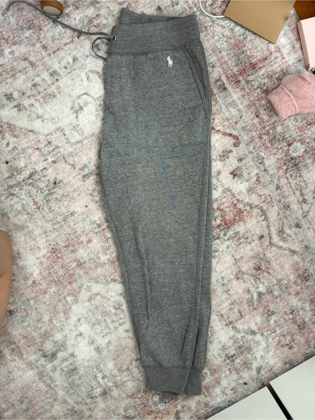 Cozy Ralph Lauren joggers in a lovely grey colour! They're a size medium and in great condition. Perfect for lounging or running errands around town