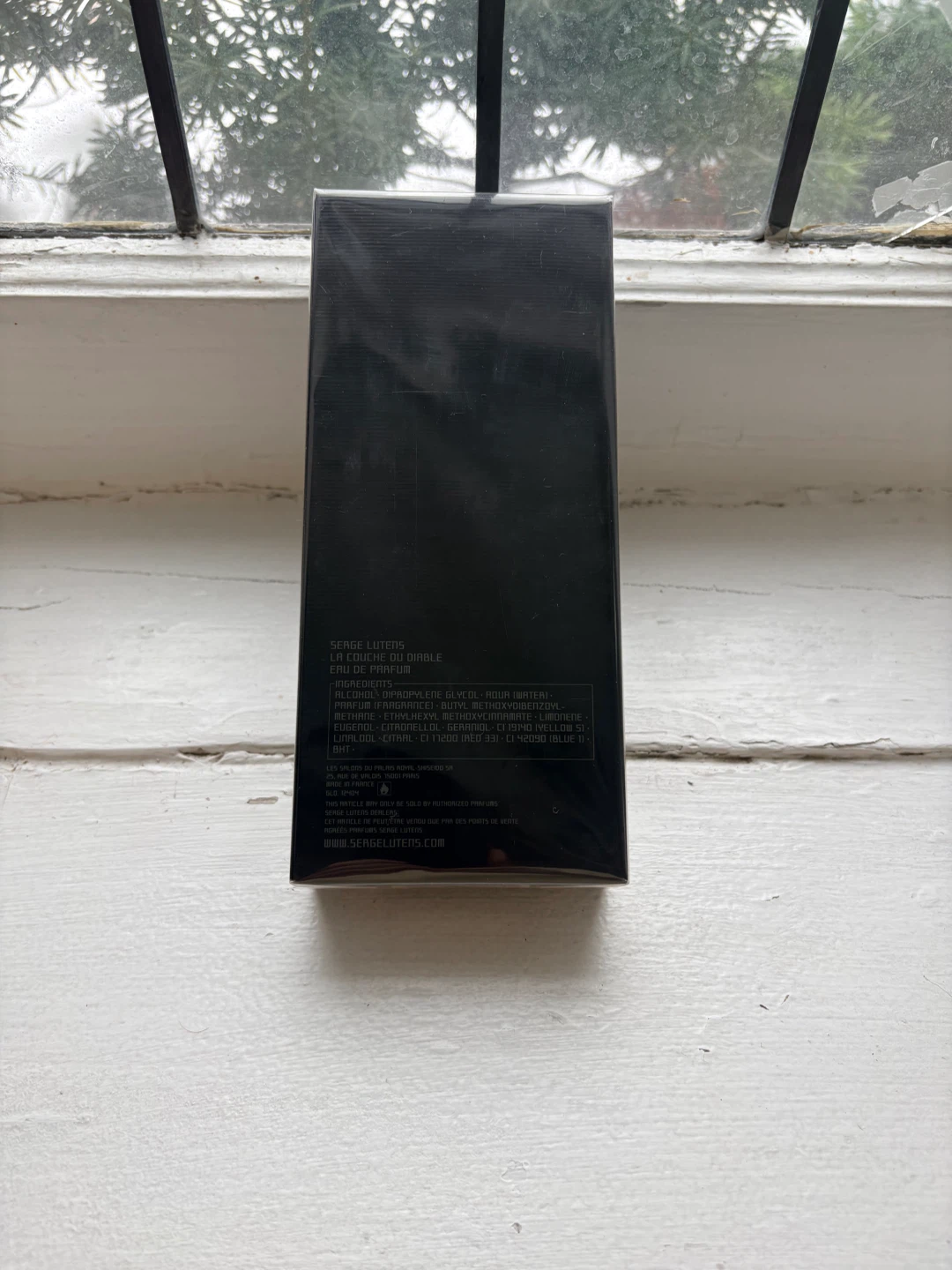 Serge Lutens - La Couche du Diable Eau de Parfum. 100ml bottle. This fragrance comes in its original box. All sealed. Original price: $345. It's a scent that's perfect for special occasions. Helping my aunt downsize for her move.