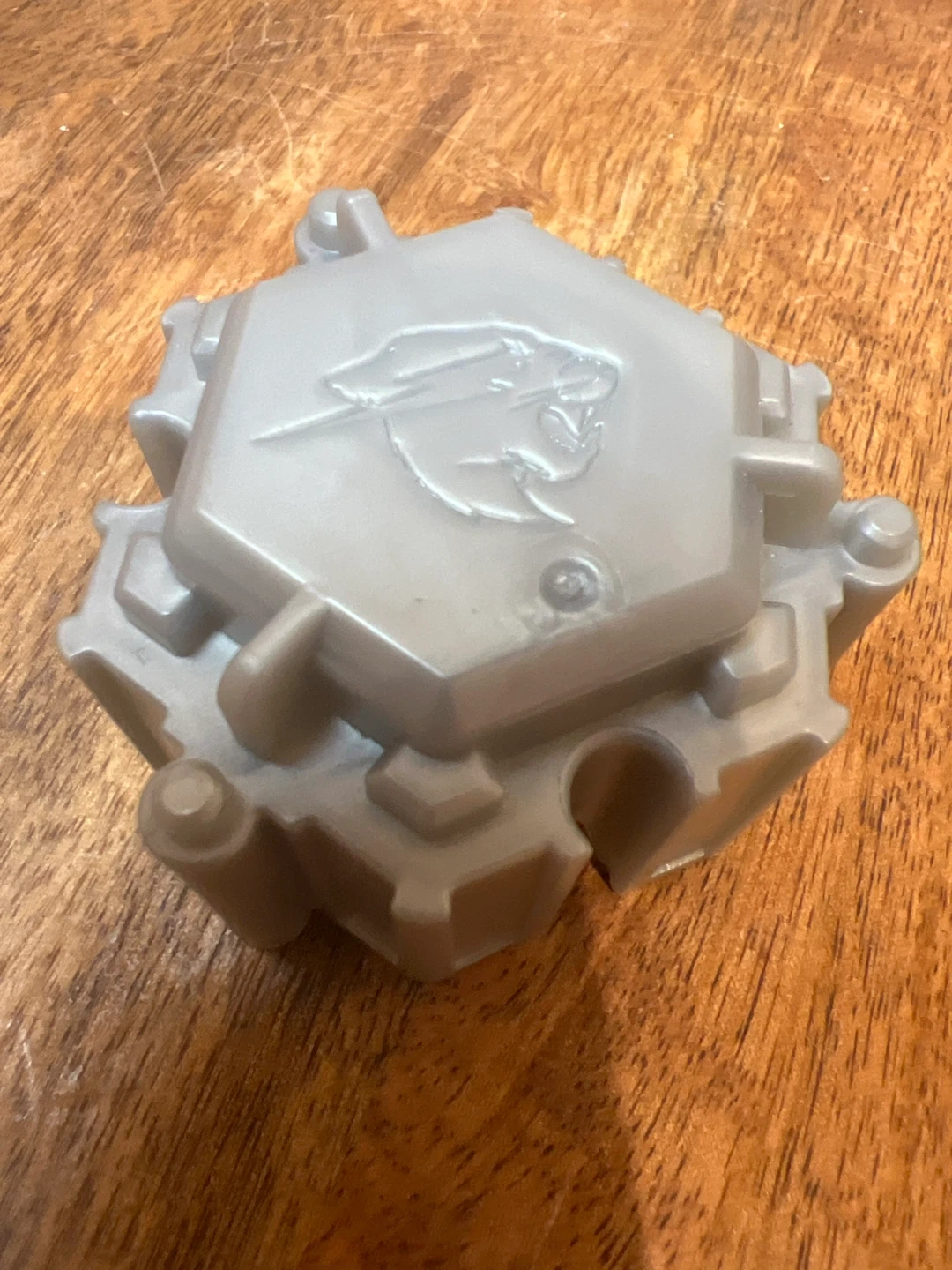 This is a MrBeast branded accessory, likely for a Beyblade stadium. It's a gray plastic component with the MrBeast logo embossed on it. It appears to be a connector or a part of the stadium structure.