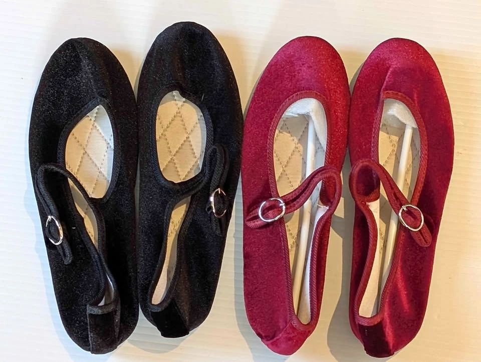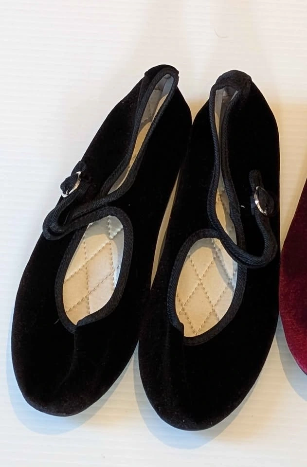Size 37/6.5 Black velvet & burgundy Mary Jane flats