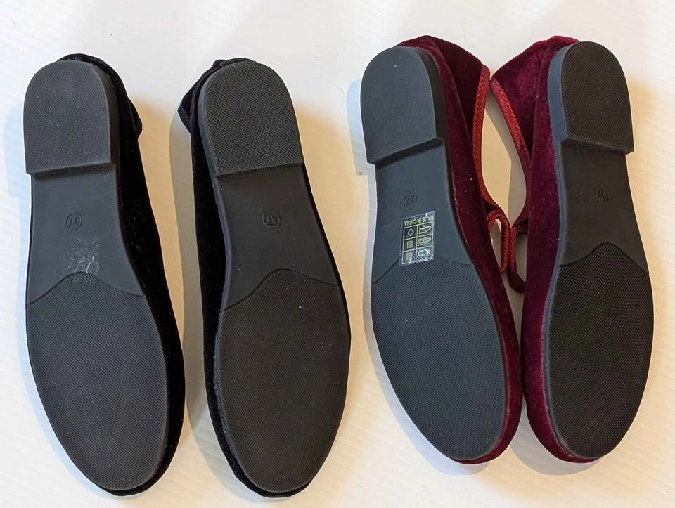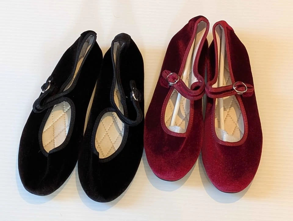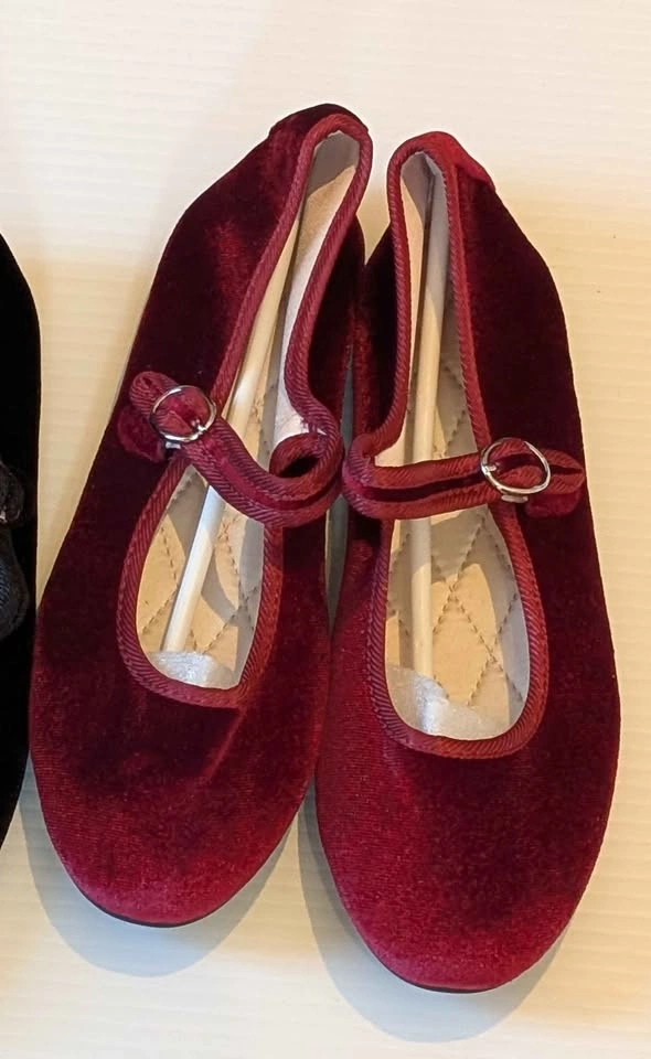 Size 37/6.5 Black velvet & burgundy Mary Jane flats
