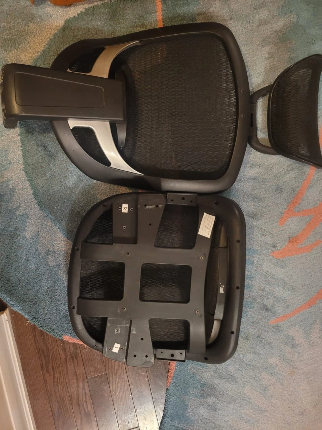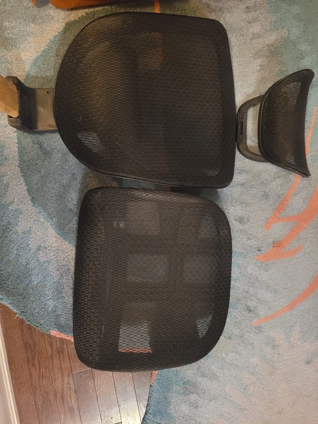 This is a mesh seat and backrest set for an office chair. The backrest includes adjustable lumbar support. These parts are made of a breathable mesh material.