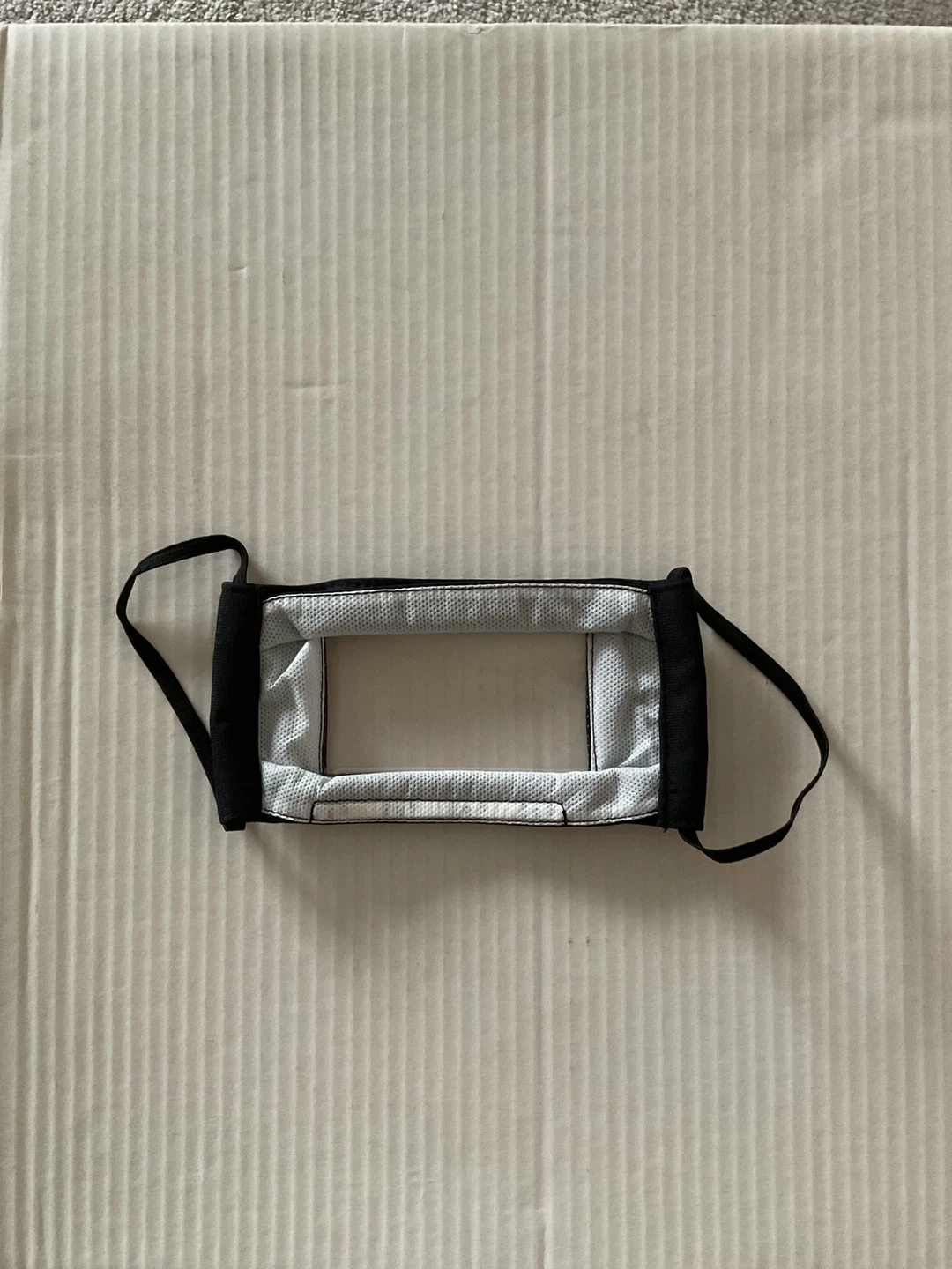 This black cloth face mask features a clear window to allow for lip reading. It's made with a breathable fabric and has elastic ear loops for a comfortable fit. It's packaged for easy transport. This mask is useful for individuals who communicate through lip reading or sign language.
