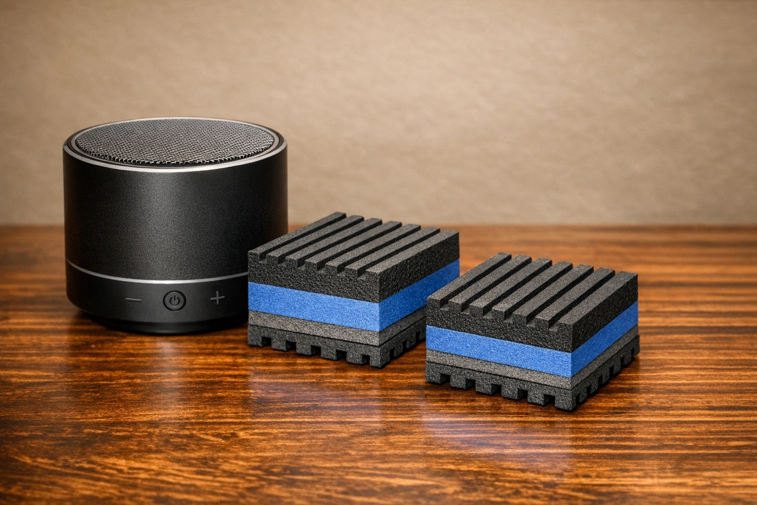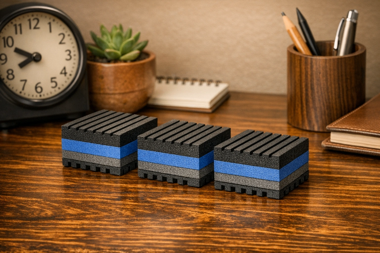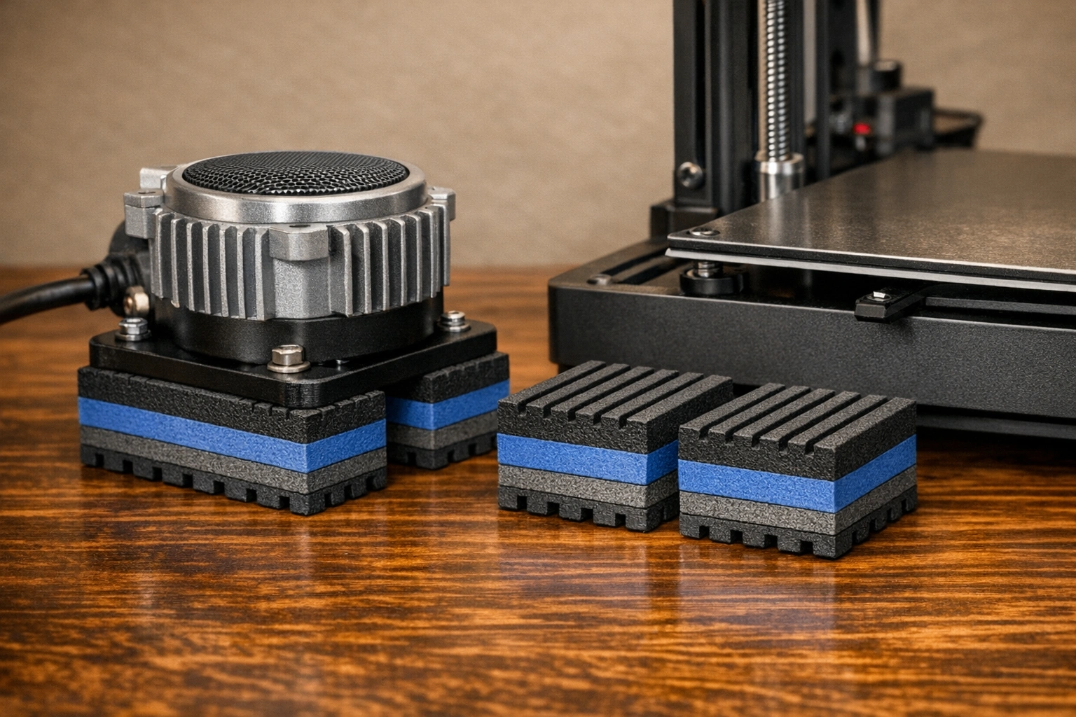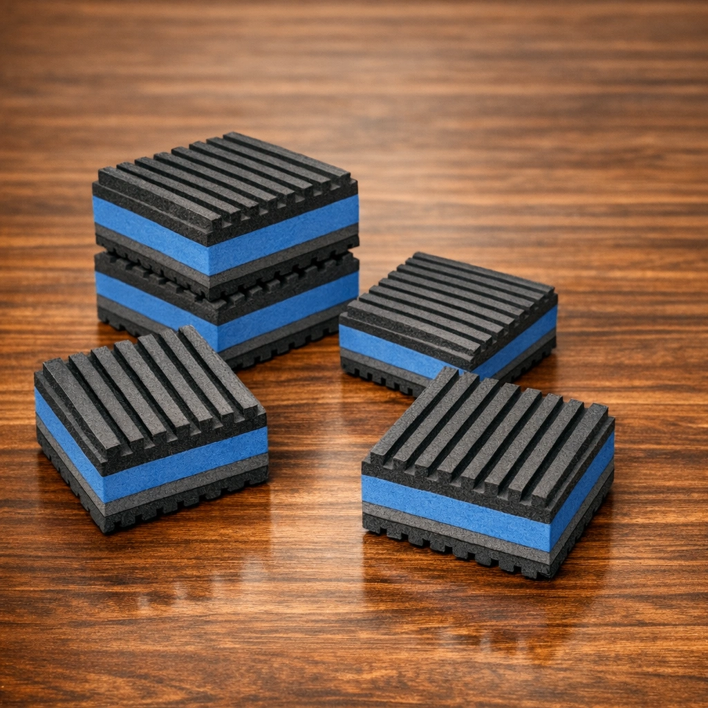 These 2" x 2" x 1" isolation pads are designed to absorb vibration, reduce noise, and keep equipment stable. The layered EVA construction provides excellent shock absorption while the ribbed surface prevents slipping. Perfect for home workshops, garages, HVAC units, and audio setups.