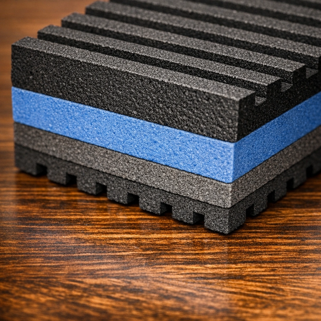Design: Ribbed anti‑slip surface + layered shock‑absorbing core