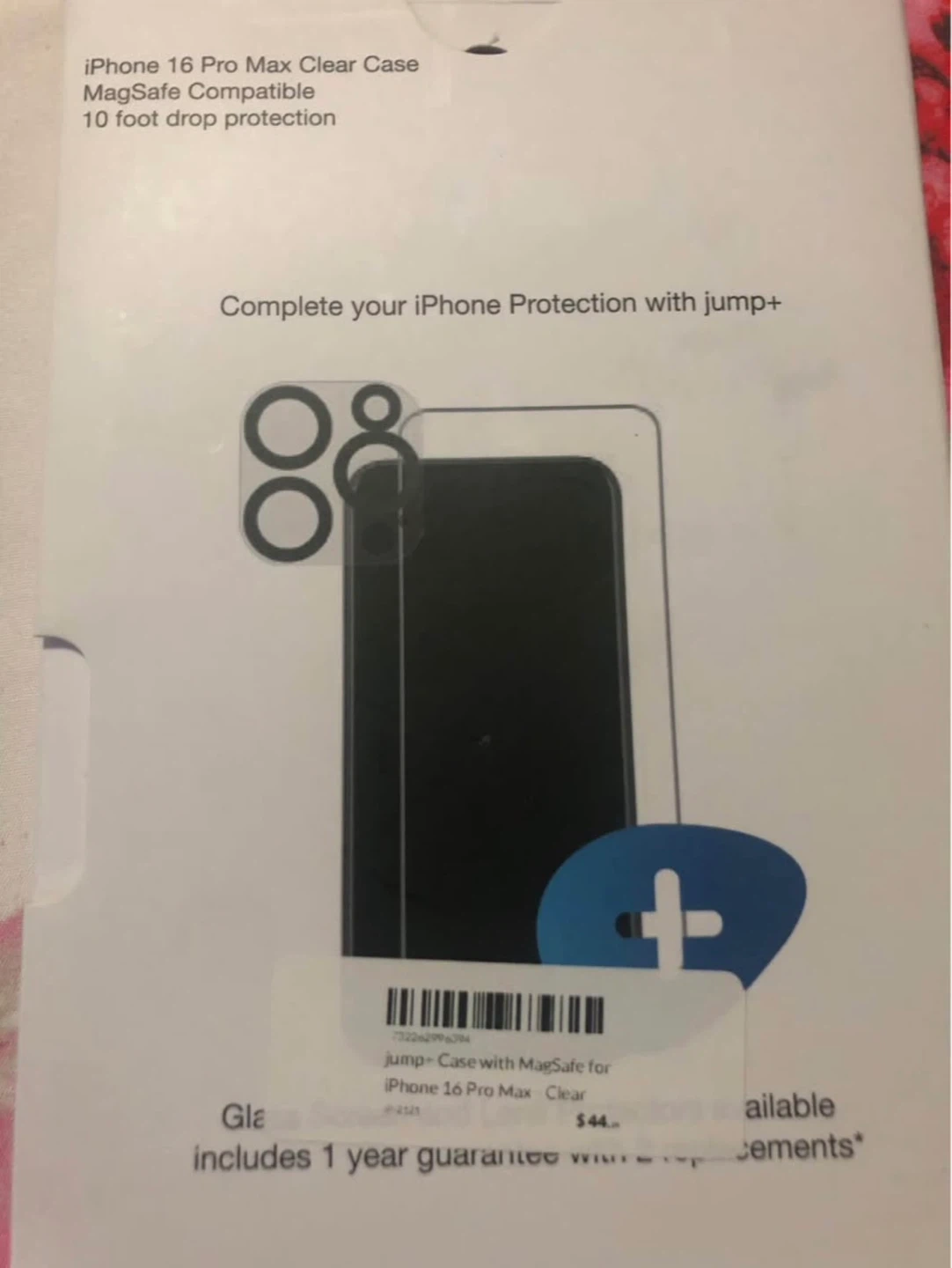 This is a clear MagSafe compatible case for the iPhone 16 Pro Max. It offers 10-foot drop protection. Includes a 1-year warranty.
