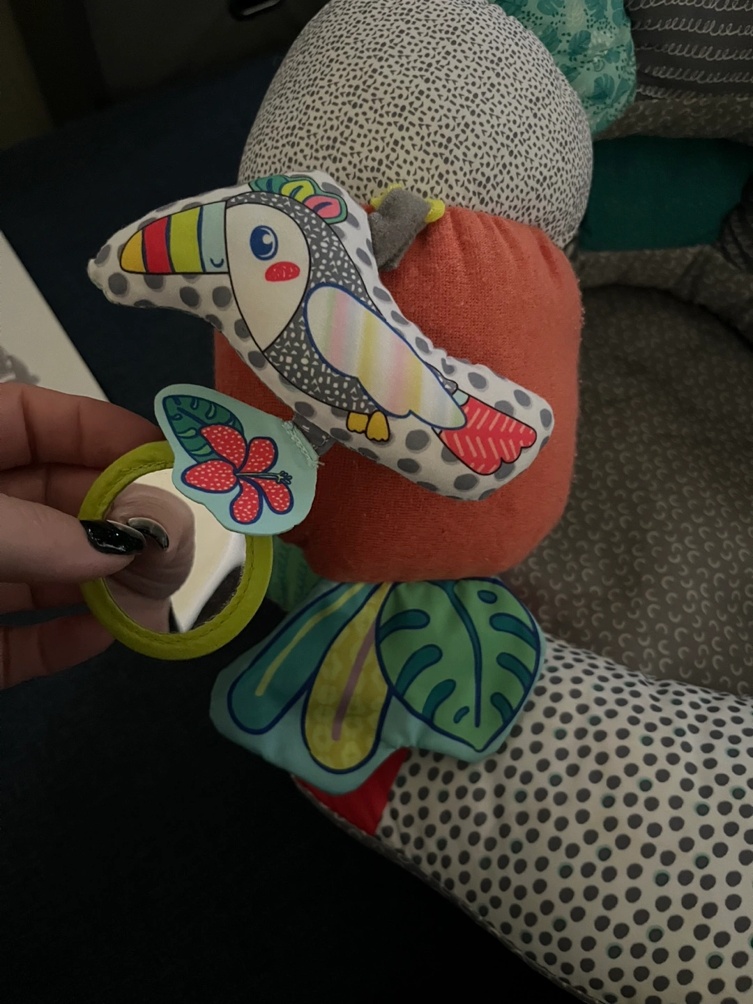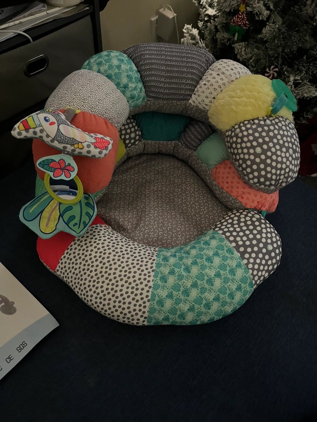 Colorful and soft baby support seat. Great for babies learning to sit up. Can also be used for tummy time.