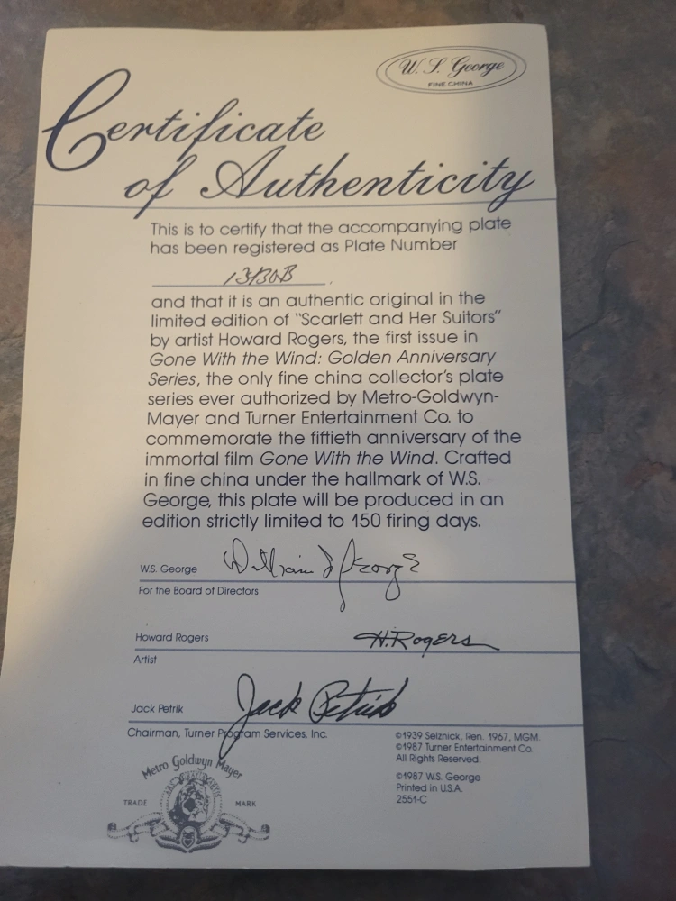 Gone with the wind plate.15 dollars with papers